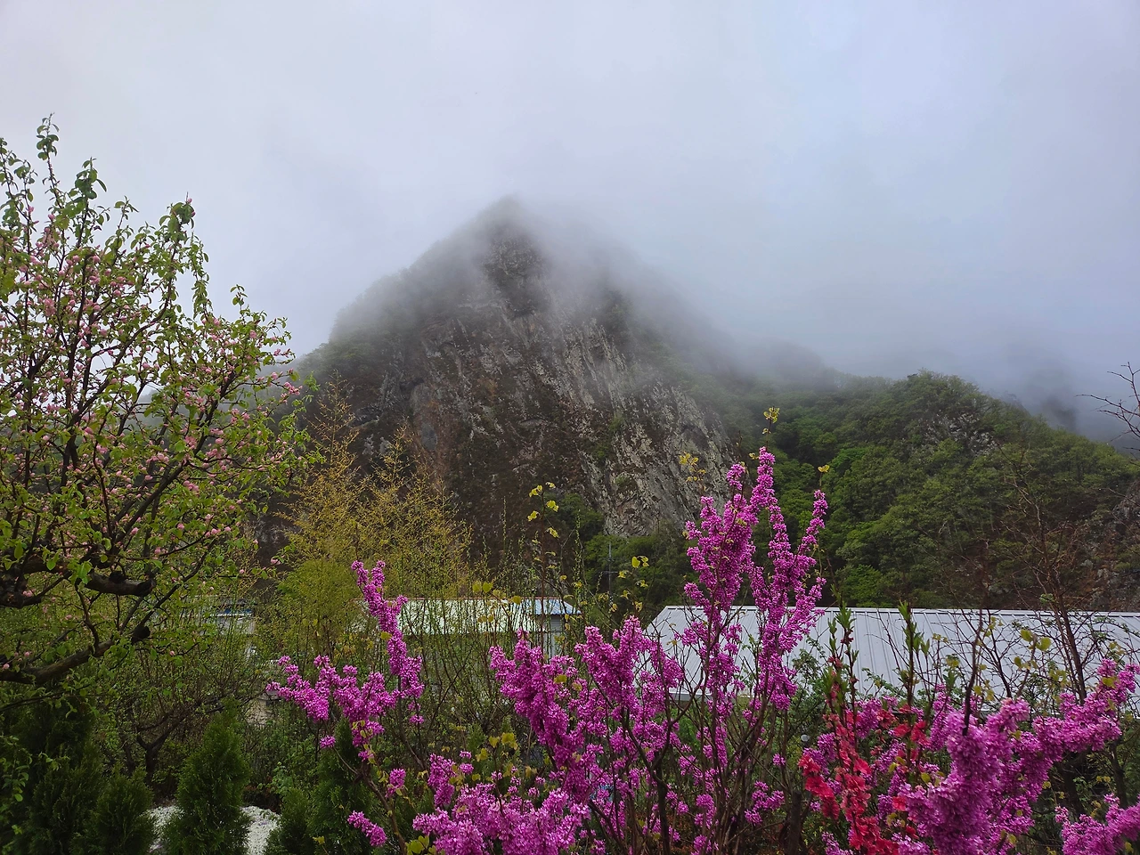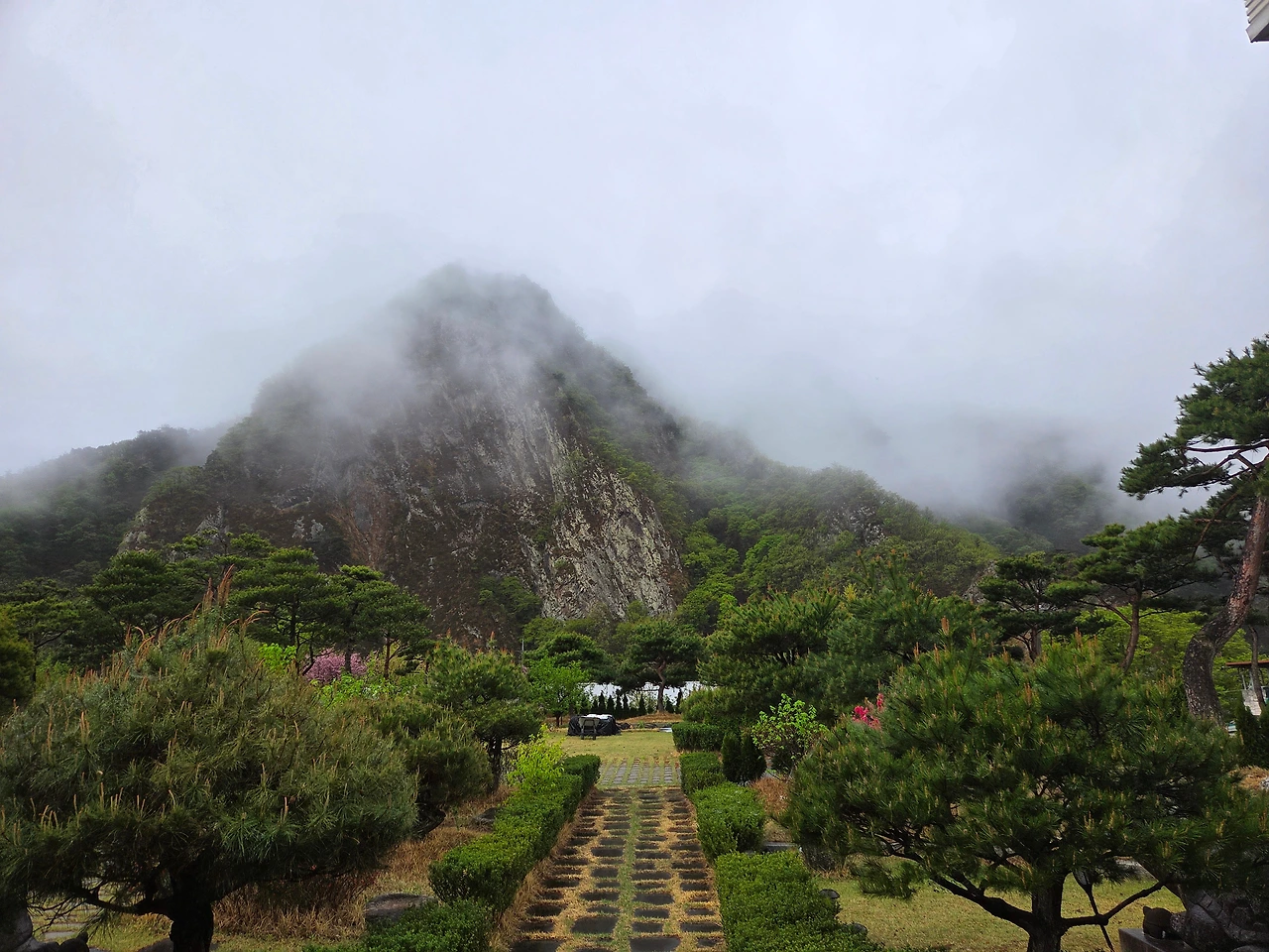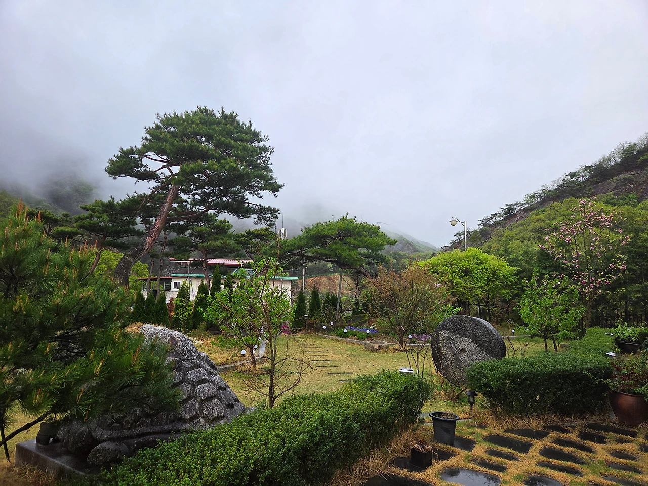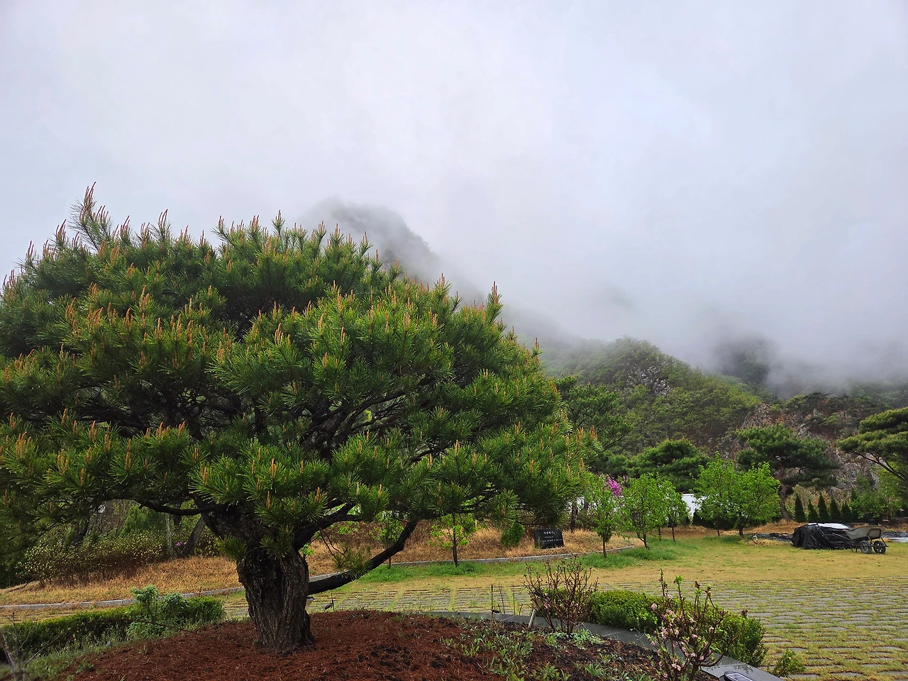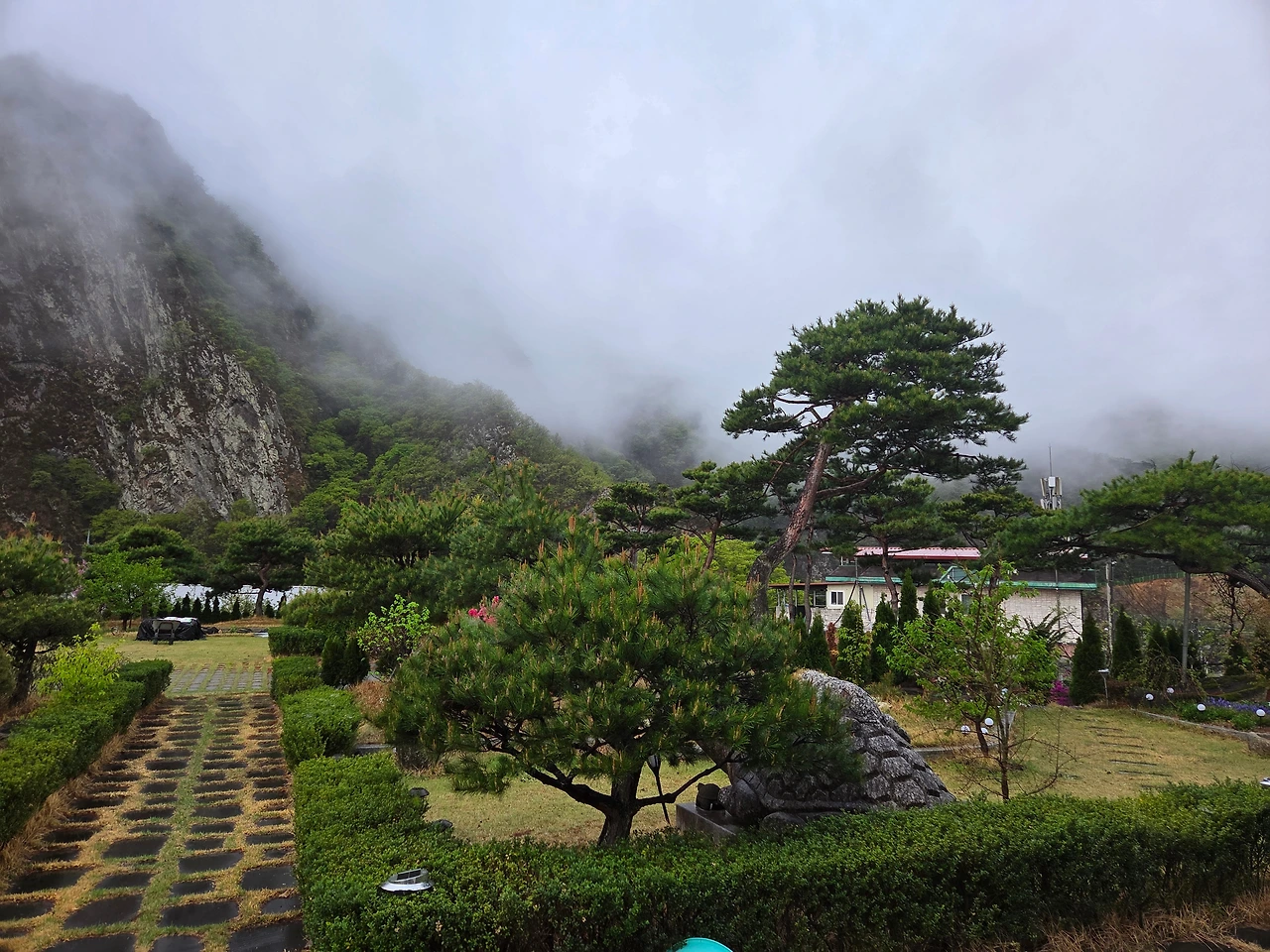 여기 좋은 풍경을 보니 1년 전 이 세상을 먼저 간 친구 얼굴이 저 운무에 쌓인 원류봉 어디에서 어른 거린다. 그와 나는 5년 전 여기에 같이 왔었고, 그가 얼마 살지 못 산다는 진단을 받은 2년 전엔 그가 집사람과 함께 2주간 여기서 요양을 했다고 한다. 나는"네가 사는 그 세상도 지금이 봄이냐, 잘 지내냐 "며 그의 1주기를 기억한다.