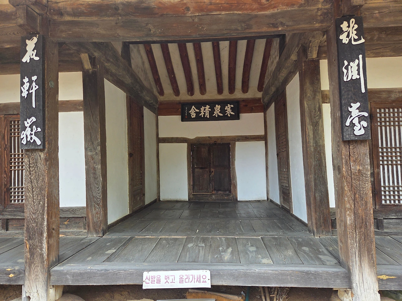 이곳이 그가 머물러 곳인지 후학만 가르친 곳인지, 그 어디에도 확실히 나오자 않았지만, 두 개 방 사이에 툇마루가 있고 자그마한 앞마당이 있는 소담한 기와집이다. 방은 성인이 눕고 안전뱅이 책상만 놓으면 꽉 찰 정도의 크기였지만 창문을 여니 원류봉과 초강천이 내려다 보였다.