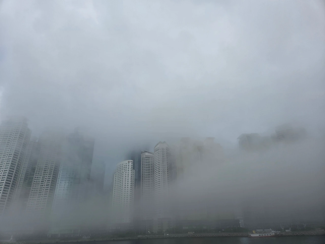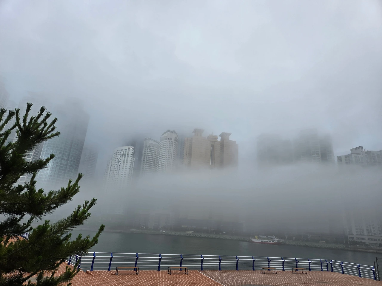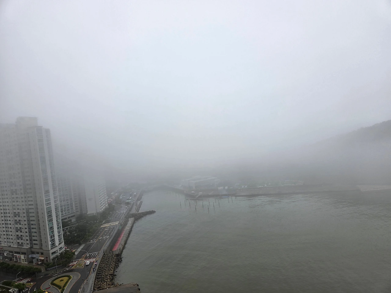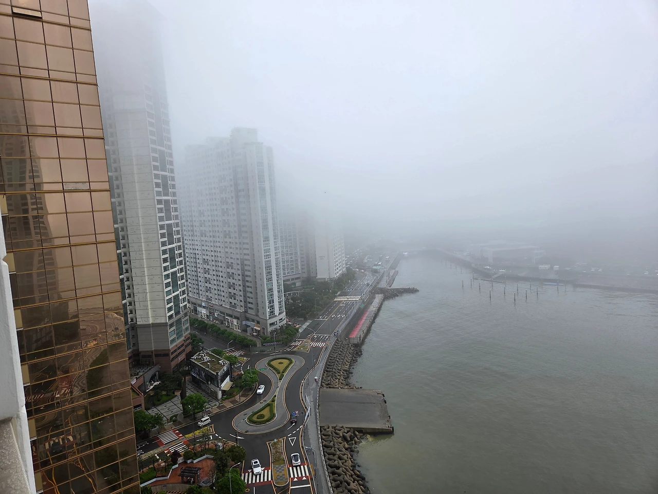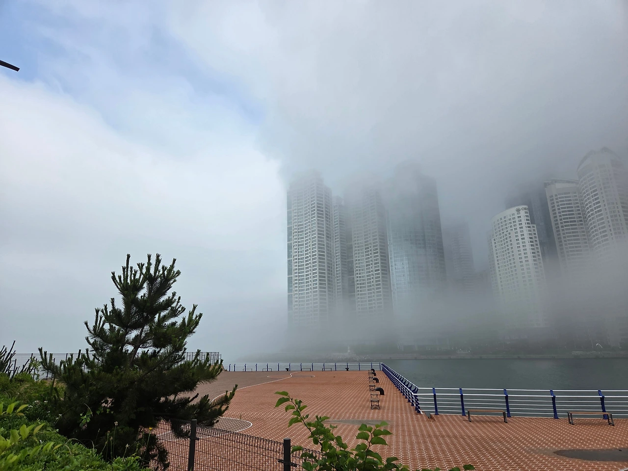 6.18 장마 시즌엔 해운대 해무가 마린시티를 이렇게 삼키고 있다. 그래서 해운대가 좋다는 집사람