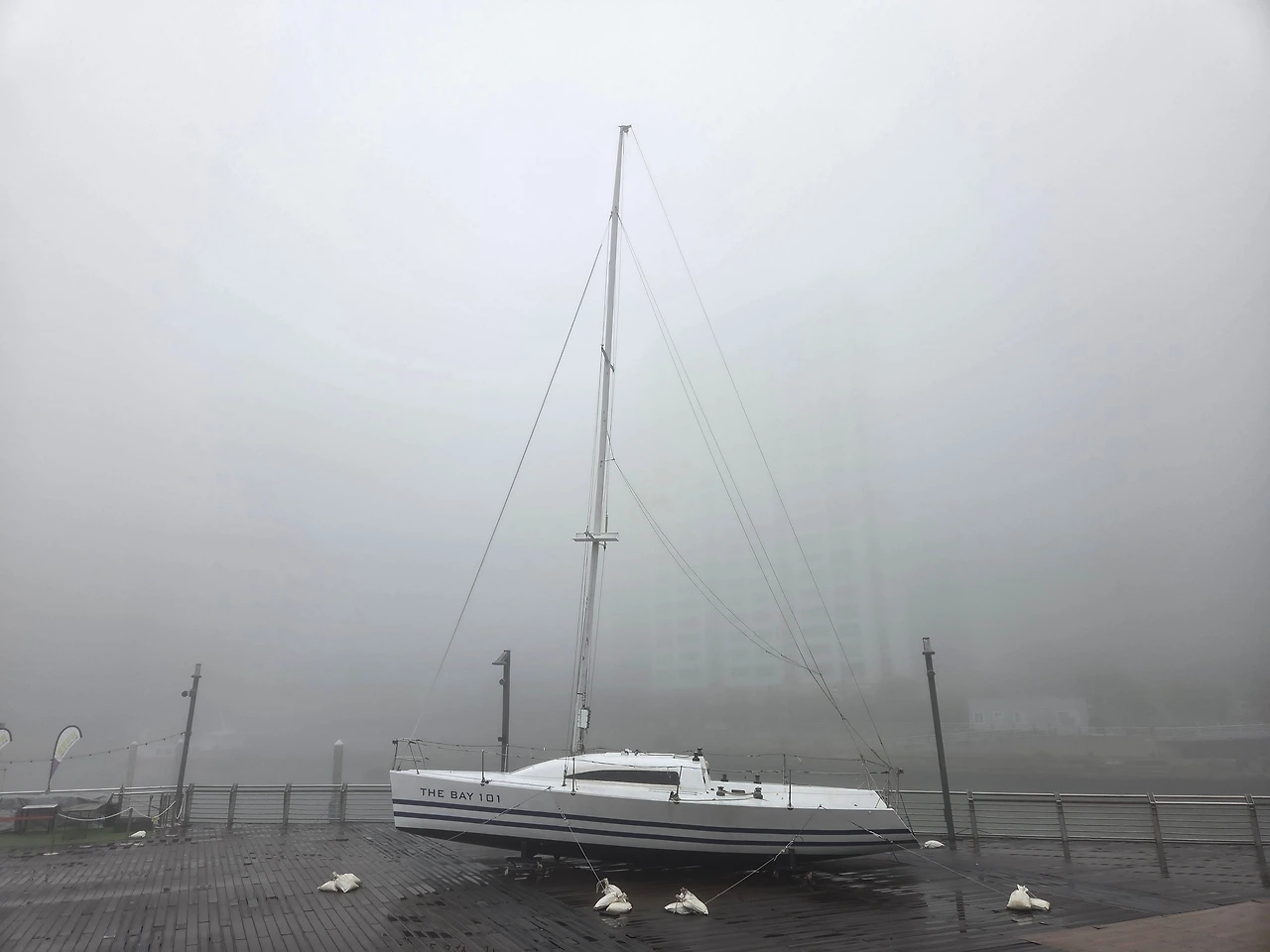 해무가 저 넘어 과잉 도시의 상징인 저 못난 101층 고층 빌딩의 흔적을 지울 만큼 자욱한다.