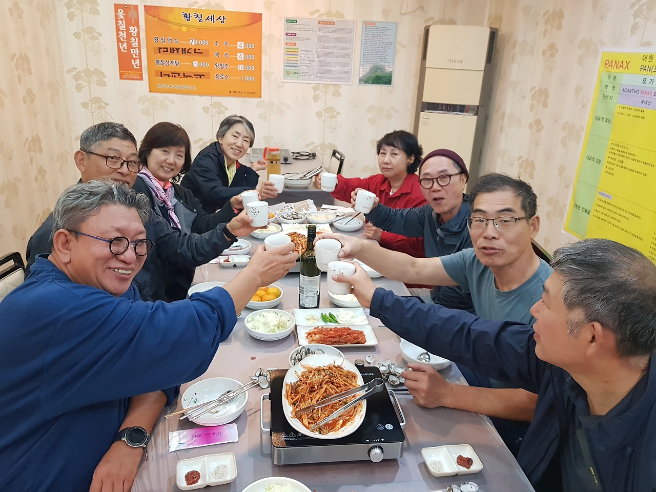 나는 차에서 일행을 기다리며 읽을 책, 캐럴 계숙 윤의 《자연에 이름 붙이기》를 찾아 꺼내든다. 438쪽의 두툼한 책이니 야금야금 읽으면 일주일이면 될 듯하다.몇 쪽 못 읽었는데 팀들이 도착한다는 연락. 마을 <우계식당>에 가서 백반 9인분을 시켜놓는다. 전라도 백반은 의심할 필요가 없다. 반찬도 푸짐하고, 찌개도 맛나다. 모두들 감탄하며 점심을 먹는다. 자전거를 탔으니 맛있을 밖에.시장도 반찬으로 거든다.