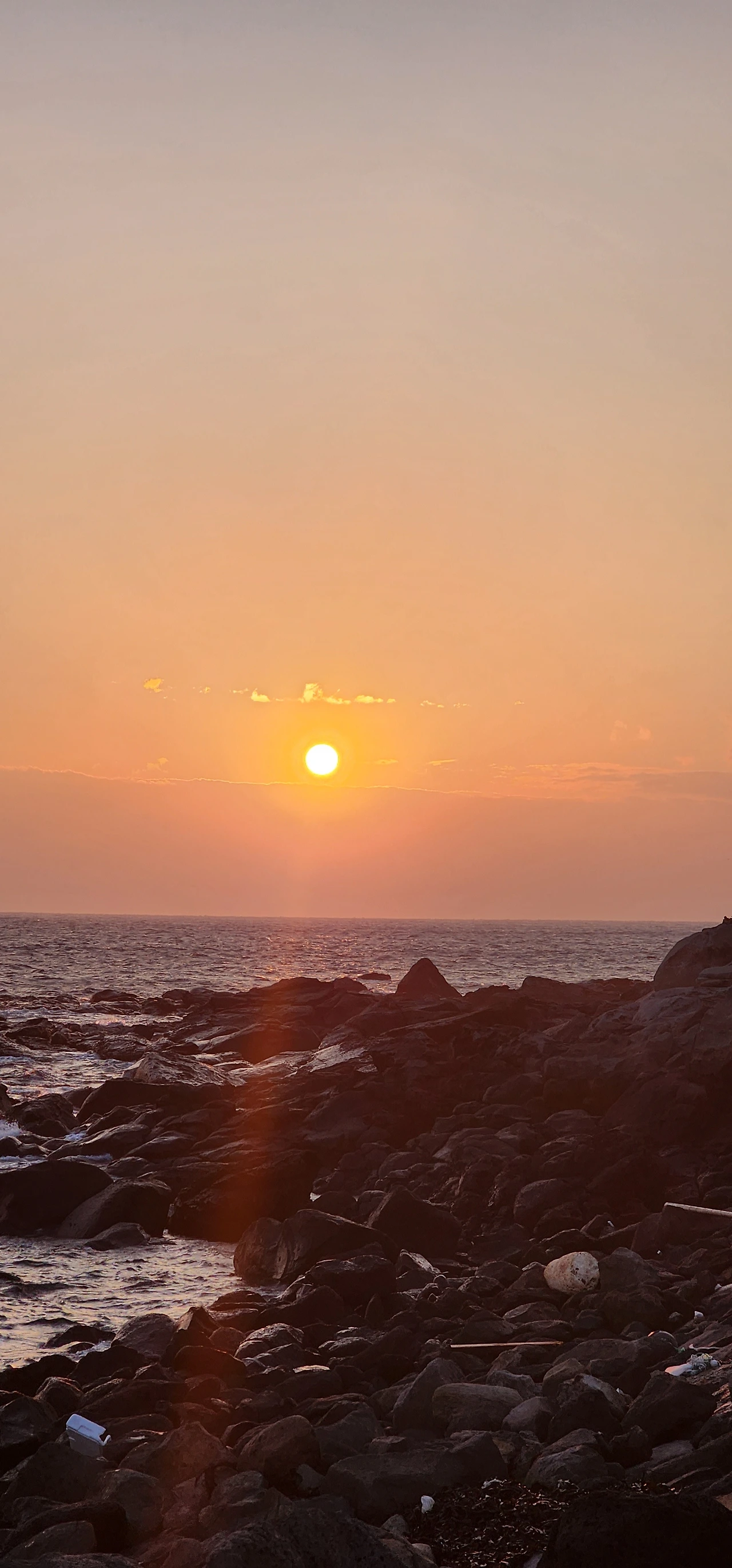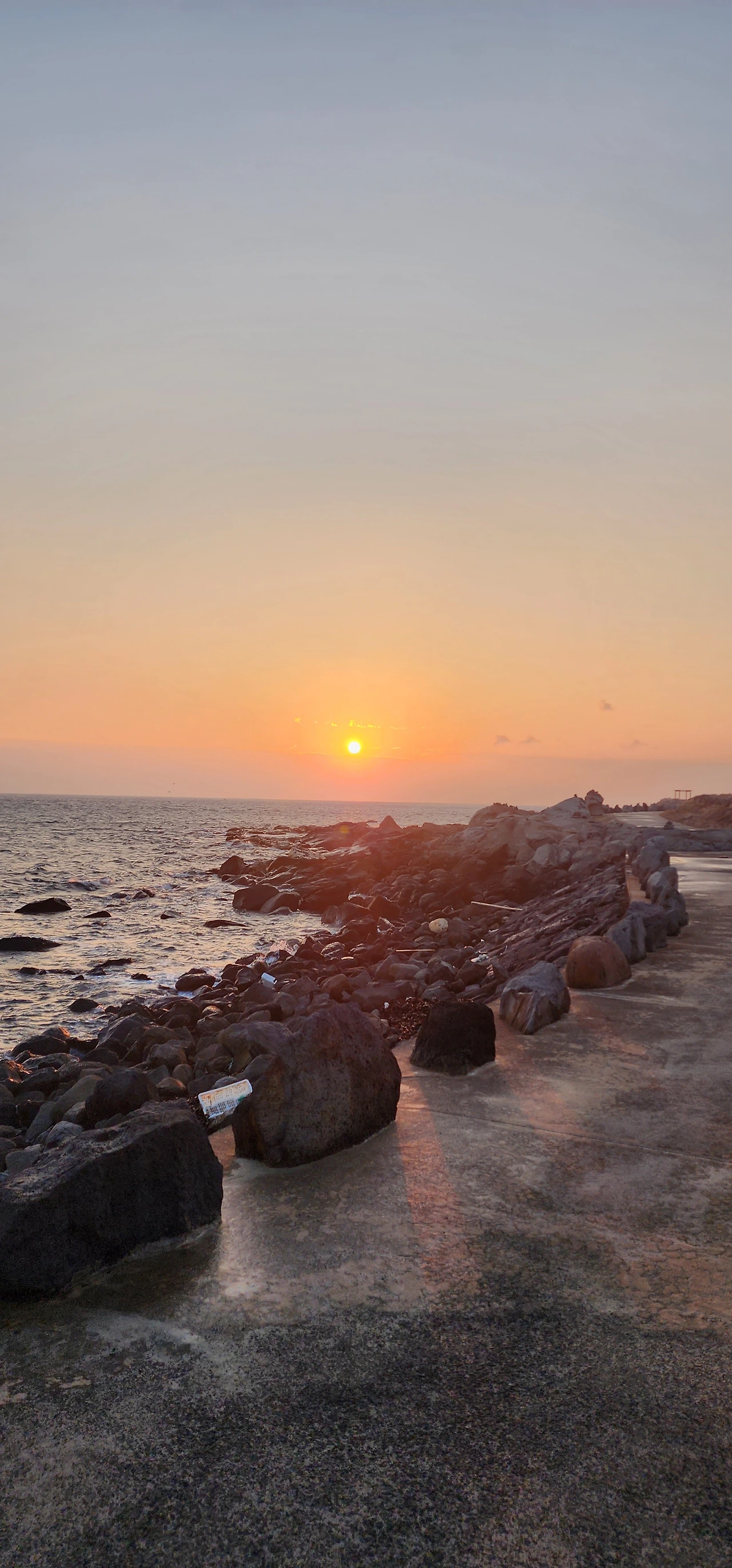 어제 아내랑 한 방에서 잤는데, 오랜만에 서로 꼭 껴안고 자고 싶었으나, 서로 워낙 혼자 자 버릇해서 같이 자는 것이 불편해서 서로 잠을 설쳤다. (그래서 내일부터는 합의하에 각방을 쓰기로 결정했다.) 그래도 출근을 해야 하니 나만 아침밥을 먹고 (아내는 아점을 먹는다.) 해 뜨는 시간에 맞춰 아내와 함께 해안길을 따라 출근했다. 아내가 오면 가장 보여주고 싶었던 것이 일출 풍경이었기 때문에.