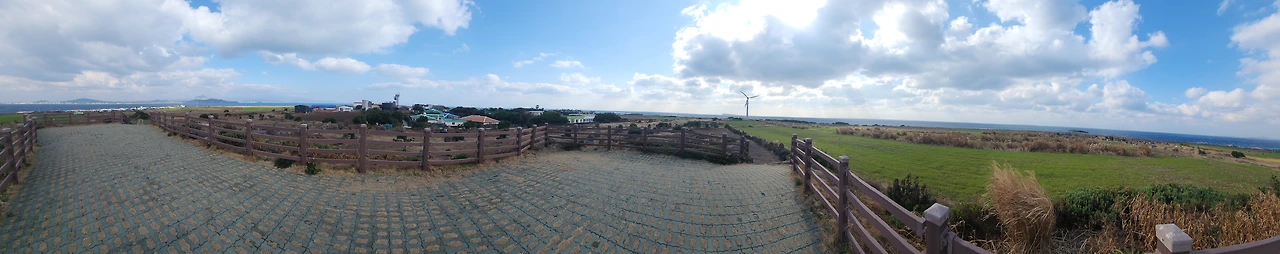 마지막 사진은 전망대에서 찍은 파노라마 사진이다. 그렇게 두 시간 남짓 걷다가 집으로 돌아오니 피곤이 몰려온다. 아내는 방으로 들어가 전기매트를 켜고 눕고, 나는 마당에 앉아 이 글을 쓰고 있다. 이제 나도 들어가 잠시 누워야겠다.마당에 감자(아내가 지어준 노랑 고양이 이름)가 한가롭게 쉬고 있다.아내와의 하루가 평온하다.