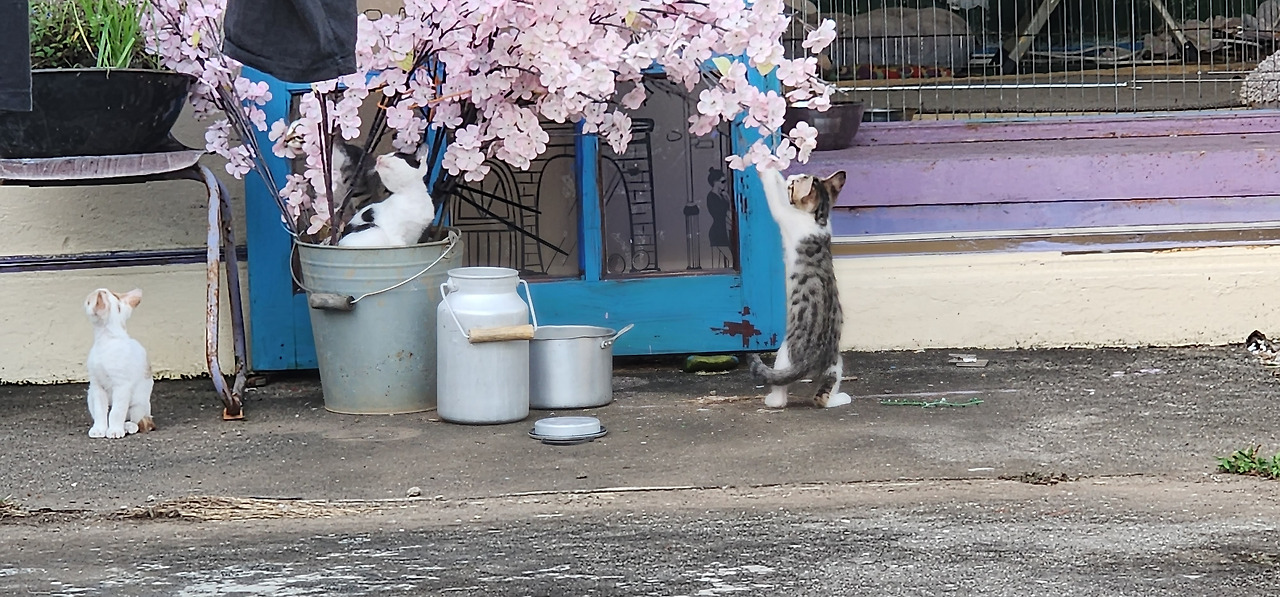"여보, 내가 마당냥이들을 자세히 관찰하며 생각해 보니까 지난해 가파도 한 달 살이할 때 키웠던 그 고양이들인 것 같아?"