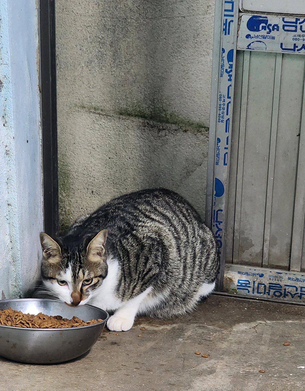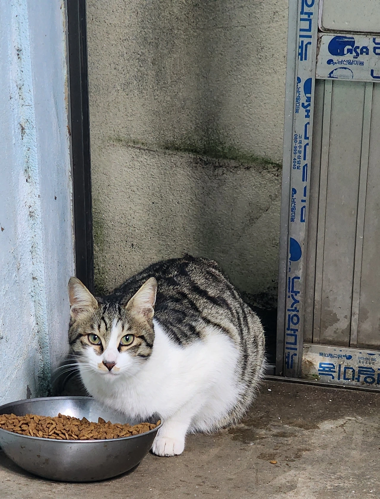 생각해 보니 꼬리 잘린 어미고양이 비비자는 며칠 전에 본 듯하고, 잘 숨는 숨자는 본 듯 못 본 듯 알쏭달쏭(?)하다. 마저 찾아봐야겠다. (지명수배를 해야 하나?) 어쩌면 아래 고양이가 숨자인 듯 하다. 나만 보면 숨는다.