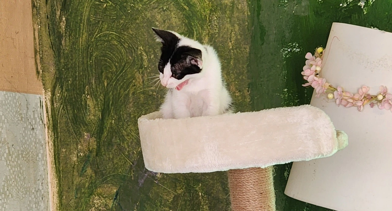 "응, 여보가 감자라고 이름 지은 노랑점 고양이가 내가 작년에 돌봤던 먹자 같아. 사진을 확인해 봤더니 이마에 점 두 개가 똑같아."
