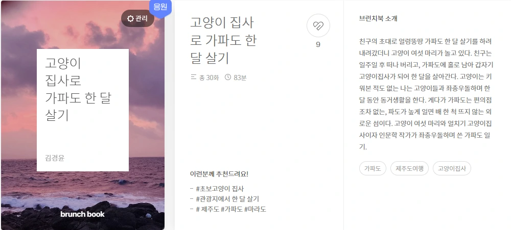 며칠 전 아내와 통화 내용이다. 감자가 나한테 워낙 친한 척을 해서, '얘가 왜 이러나?' 싶어서 '혹시?'하고 지난해 한 달 살이한 책을 찾아서 살펴보았더니 영락없이 그 고양이 먹자였다. 다른 아기 고양이들을 먹이기 위해 솔선수범하여 새벽마다 문과 창을 긁으며 울어댔던 어미 고양이다. 궁금하시면 여러분도 지난해에 썼던 브런치북 <고양이 집사로 가파도 한 달 살기>를 읽어보시길 권한다. (덩달아 응원도 해주면 땡큐 베리 머치다.)