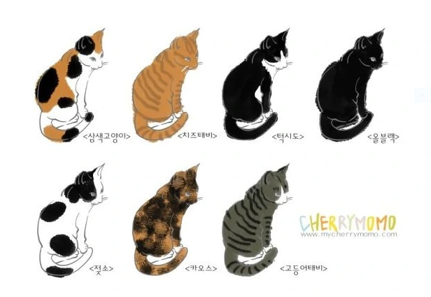 가파도에 살면서 고양이를 관찰하다 보니 코리안 쇼트헤어(약칭 코숏)가 대부분이다. 원래 고양이가 아프리카에서부터 퍼져나갔으니, 한국 토종 고양이는 없는 셈인데, 그래도 다른 나라에서는 품종개량을 통해서 다양한 모양의 고양이들을 육종해왔다. 우리나라에서는 그런 품종개량의 노력은 없었던 것으로 보인다. 인터넷을 뒤져보니 대략 6~7종의 한국 고양이가 있는 것으로 나온다. 대부분 가파도에서도 관찰 가능한 고양이들이다.