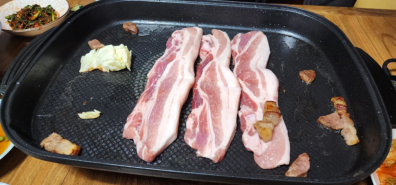집에 도착하여 짐을 풀고, 잡은 물고기 두 마리는 고양이 밥으로 던져주고, 삼겹살과 소주, 맥주를 들고 일찌 언니네 집으로 향한다. 고기를 편하게 구워 먹을 수 있는 곳으로 최고의 장소가 일찌 언니집이다. (매번 손님이 올 때마다 싫어하는 기색도 없이 반갑게 환대하시는 일찌 언니 최고!)