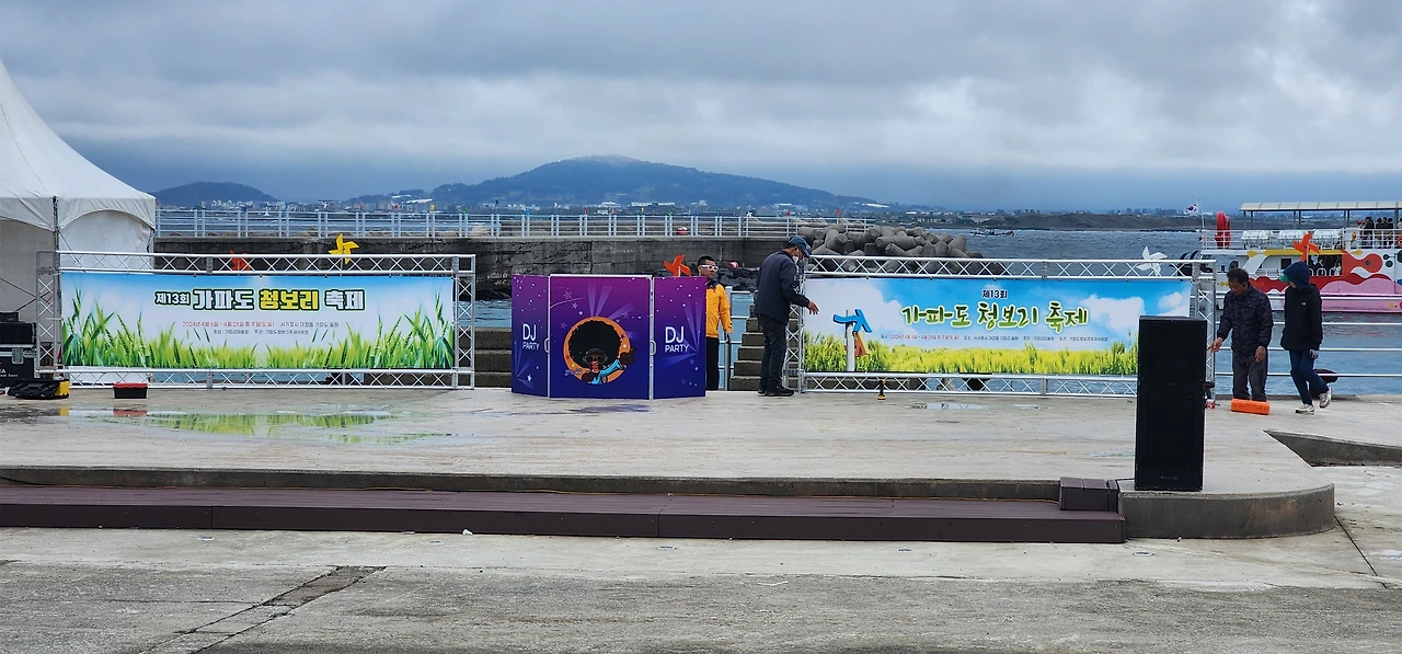 청보리 축제의 시작이 이틀 전으로 다가왔다. 매표소 주변으로 무대를 설치하고, 엠프를 세팅하고, 소라낚시 풀장을 설치하고, 바람개비를 설치하고, 현수막을 달고 정신이 하나도 없다.