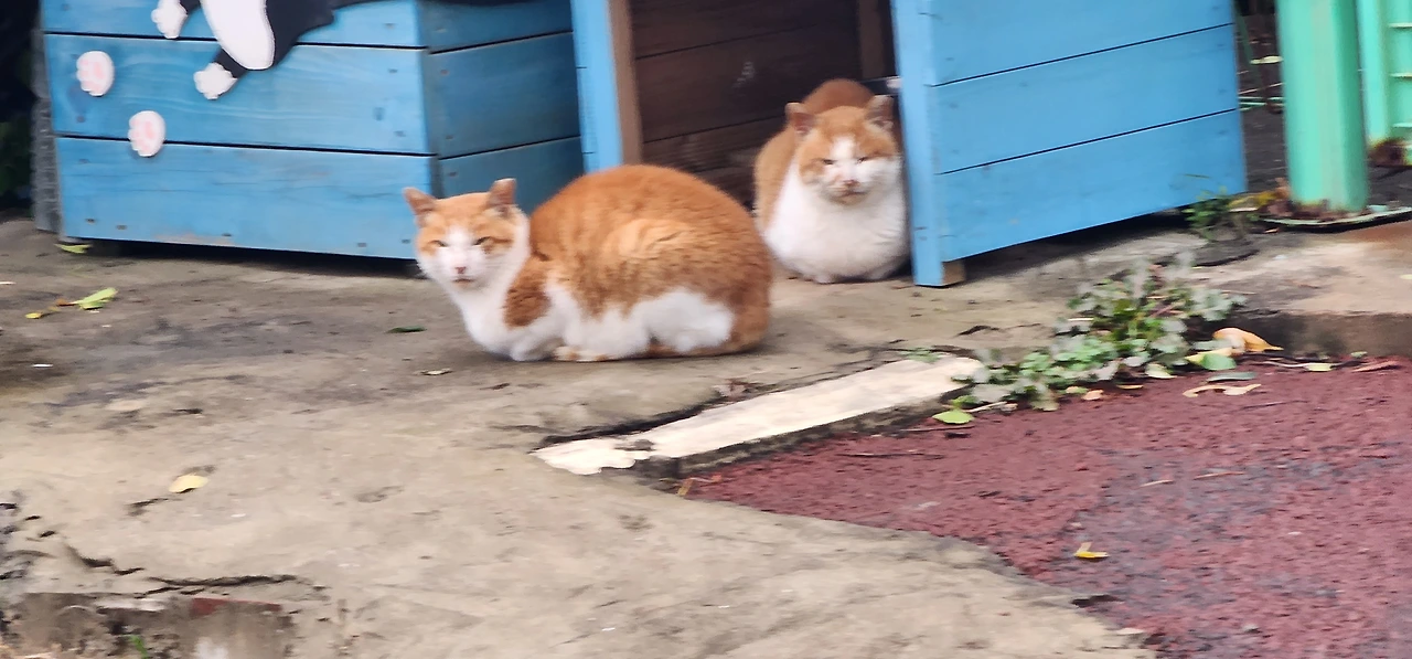 그리고 고양이에게 먹이를 주고 싶으면 고양이가 육식동물이라는 사실을 기억해 주시길 바란다. 그러니까 과자나 빵 종류는 줘도 안 먹는다. 물고기나 육고기를 먹고 자라는 동물이지만, 요즘은 고양이 사료나 고양이 캔, 츄르 등을 먹인다. 고양이들과 친해지고 싶은 관광객이 있다면 츄르나 캔을 한 두 개 가져오시면 고양이와 친해질 수 있다.