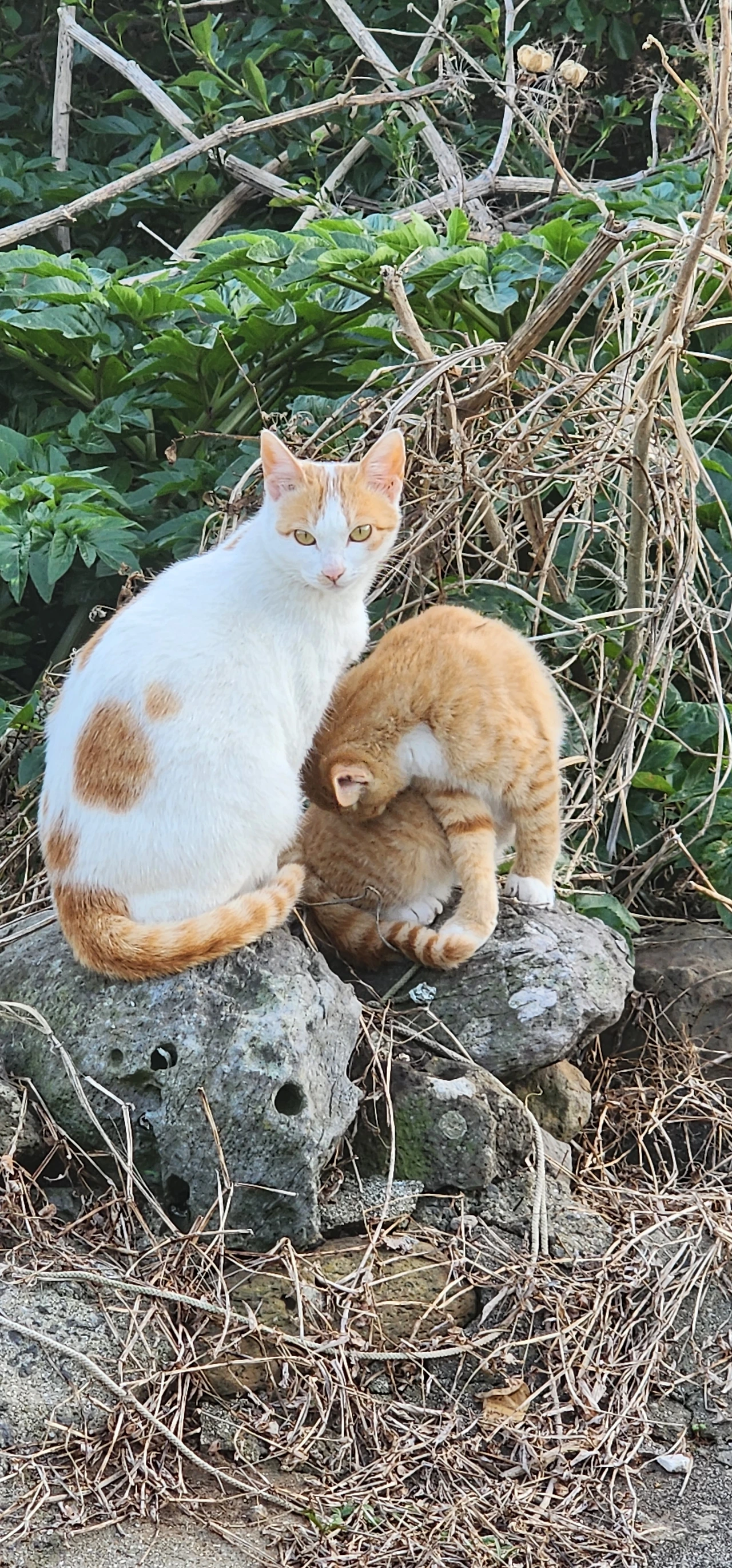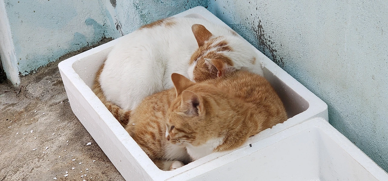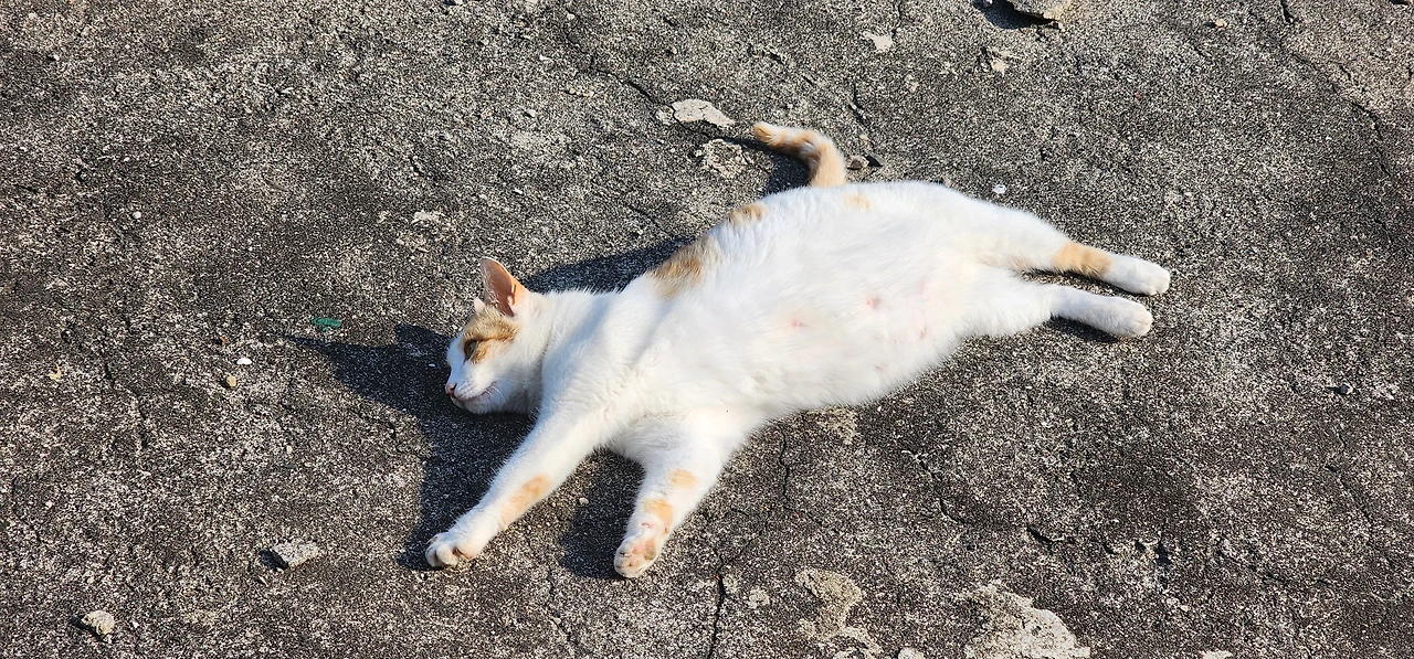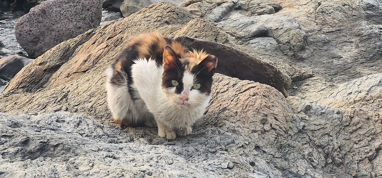먼저 배가 내리는 선착장에서 상동 해안가를 따라가면 만날 수 있는 고양이들이다.