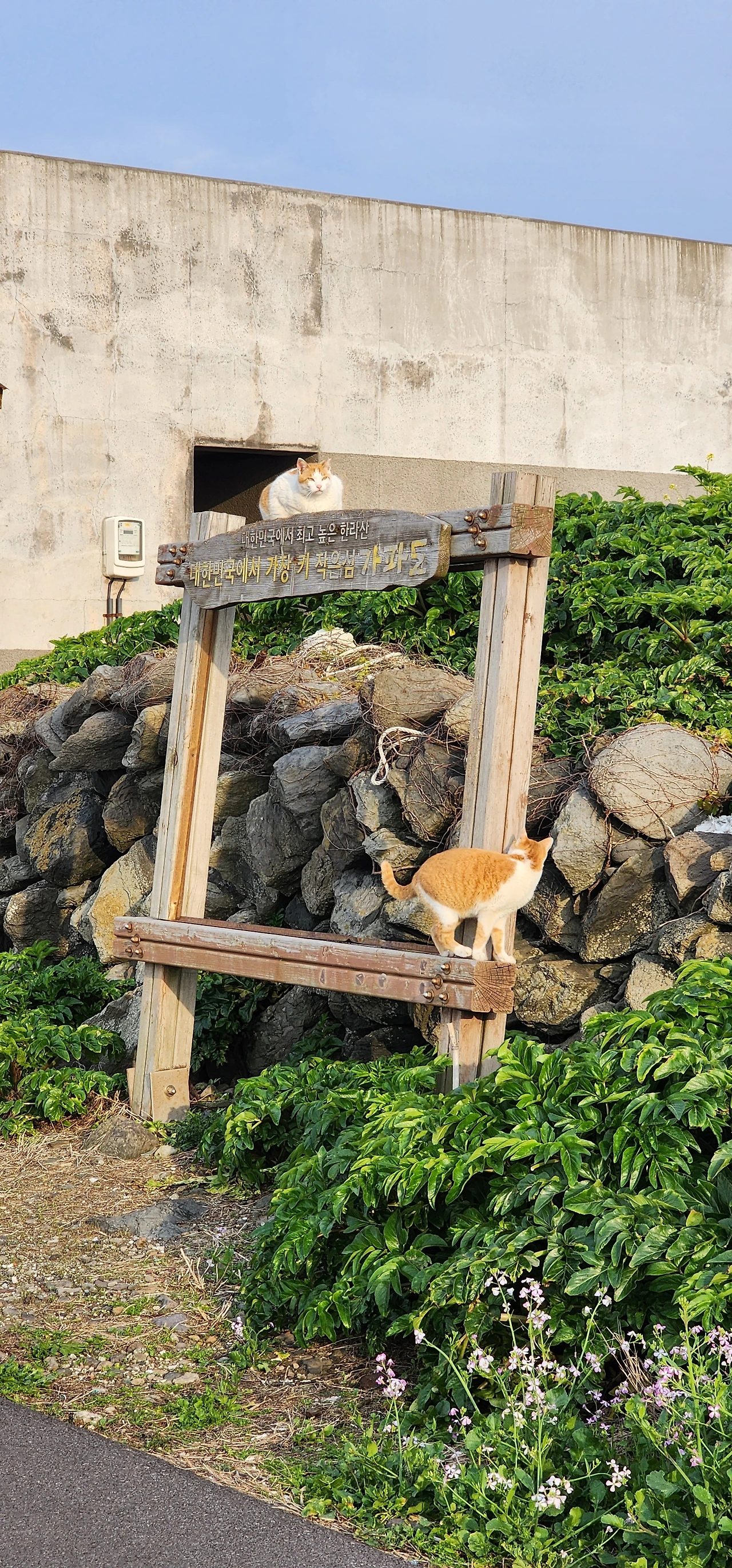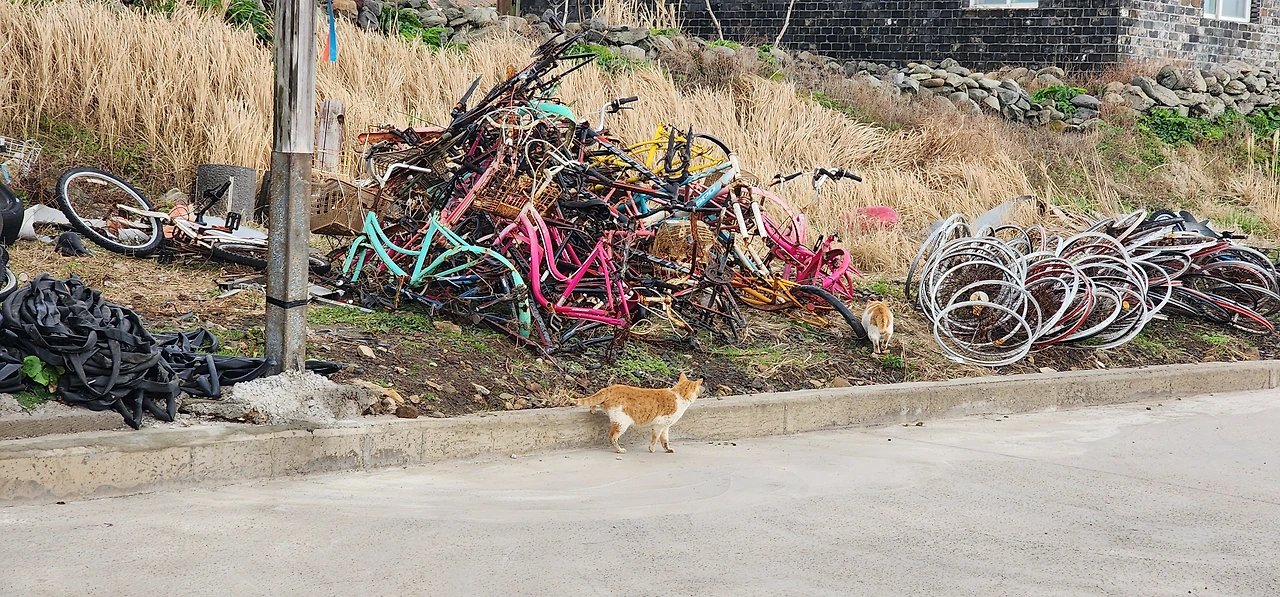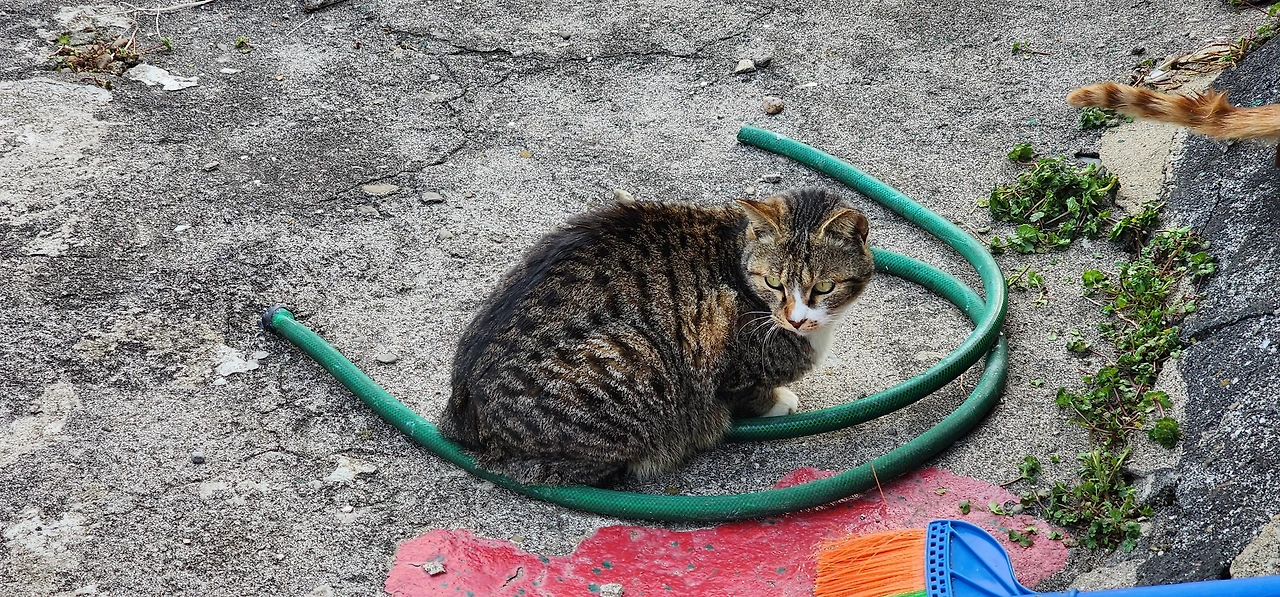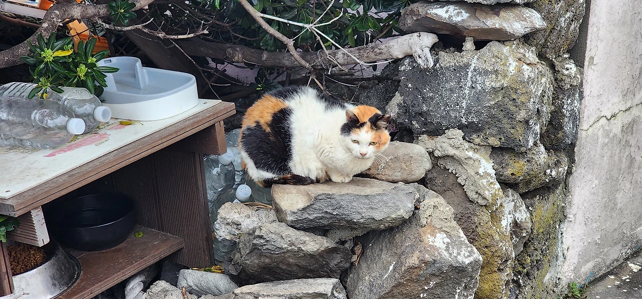 가파도 의용소방대를 끼고 들어오는 우리집 골목으로 들어오면서 만날 수 있는 고양이들도 있다. 이 아이들은 틈만 나면 우리집 마당의 식량을 노린다.