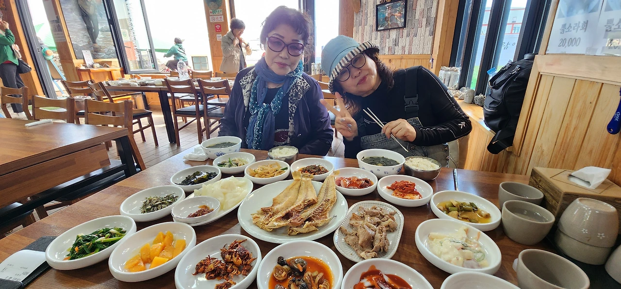 아침식사는 가파도에서 제일 비싼 용궁식당에서 정식을 시켜 먹었다. 가파도 고유의 반찬이 많이 나오는 식당이라 여성들이 많았다. 동생도 엄마도 만족한다. 다행이다.