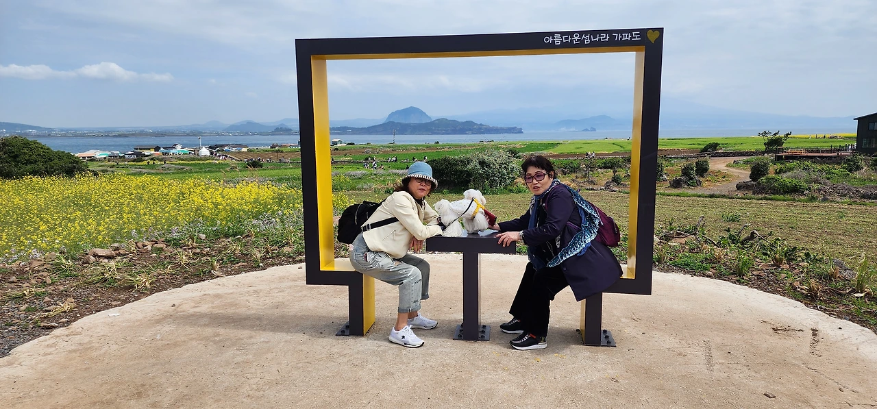 천천히 걸어 전망대도 구경하고, 청보리 밭도 구경하고, 매표소까지 왔다. 영진이 아빠를 만나 운진항에 주차해 있는 차를 빌렸다. 가족이 이동하려면 아무래도 차가 필요할 것 같았는데, 천우신조였다. 운진항에 도착하여 지난 번에 다녀온 적이 있는 산방산 금모래 해안가와 송악산휴게소를 가보기로 했다. 모슬포에 숙소를 잡으려면 체크인 시간이 오후 4시라 그때까지는 근처를 관광하는 것이 낫다 싶었다. 몇 군데를 돌았더니 피곤이 몰려온다. 숙소에 들어가 쉬어야겠다.