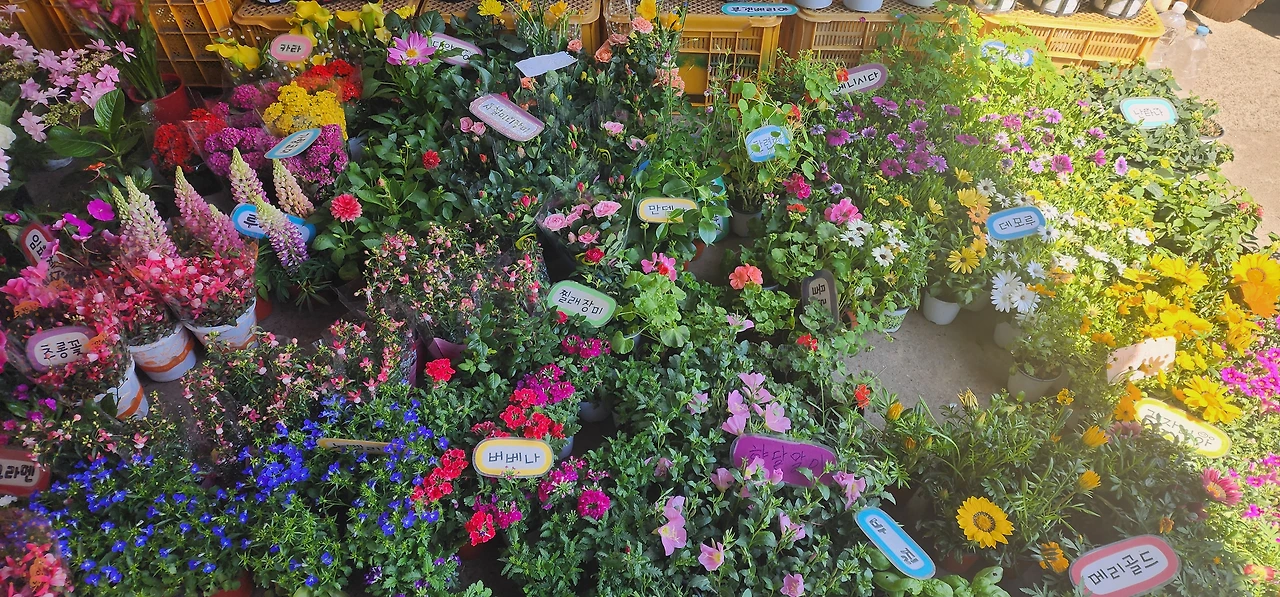 오일장에 있는 꽃집. 꽃들이 하도 예뻐 한 장!