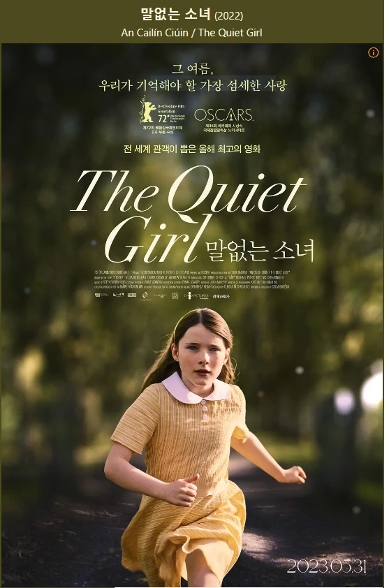 소설은 어린 소녀의 시선으로 본 세상을 담았다. 사랑이 없는 가정에서 무심한 부모와 지내던 그가 먼 친척의 집에 맡겨진 어느 여름. 다정히 눈을 맞추며 말해주고, 넘어질까 걱정하며 손을 잡고 걸어주는 따뜻한 어른을 처음 만나본 소녀는 생각한다. "부끄러운 일도 비밀도 없는 이곳이 당분간 내 집이면 좋겠다"고. 처음 받아보는 관심과 배려 속에서 소녀의 세상은 이제껏 없던 밝은 빛으로 채워진다. 불순물을 날리며 졸이고 또 졸인 끝에 마지막으로 남은 순수한 결정체를 연상시키는 문장과 여백이 자아내는 그 여름의 찬란한 풍경이 책장을 덮은 후에도 오래도록 마음속에 자리한다. 영화 '말없는 소녀'로 영상화되어 5월 31일 국내 개봉을 앞두고 있다. - 소설 MD 권벼리 (2023.05.26)