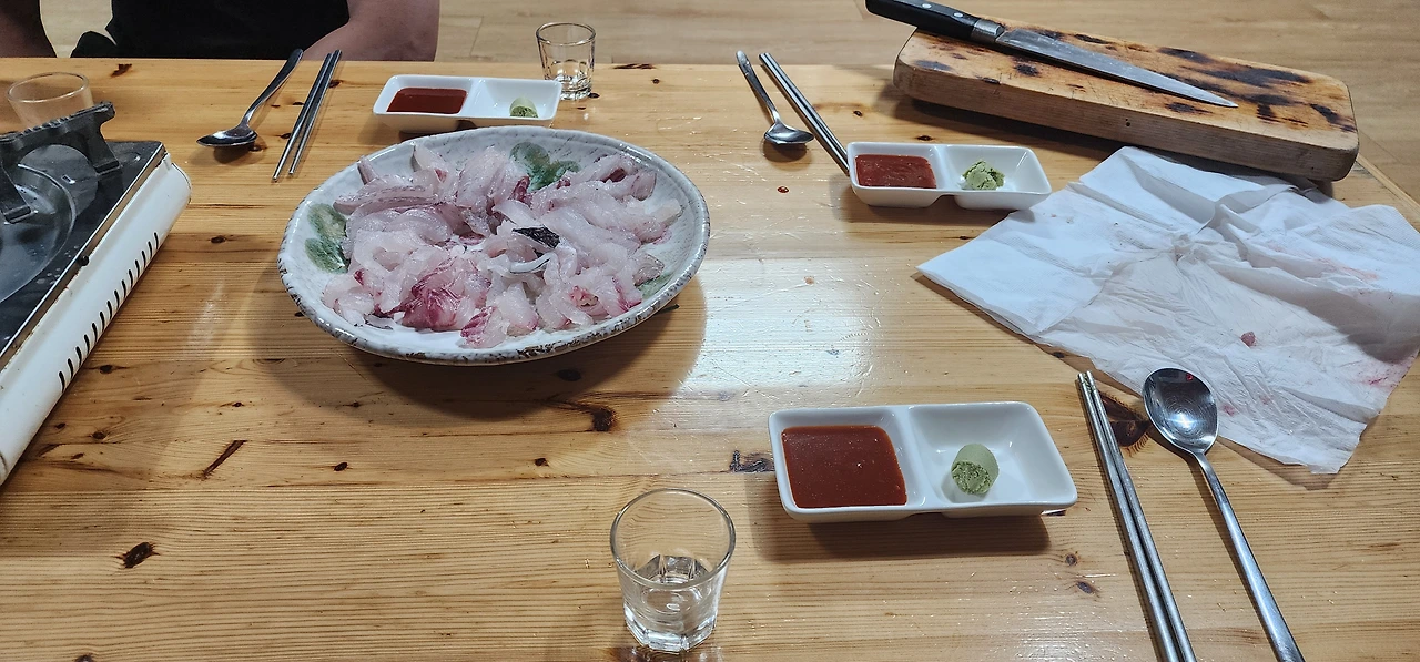 나는 낚시에는 관심이 없고, 회에만 관심이 있다. 잘 잡는 사람이 있고, 잘 먹는 사람이 있는데 나는 후자다. 각자 자기의 재능을 잘 발휘(?)하며 조화롭게 사는 것이 좋다고 생각한다. (차려놓은 횟상에 젓가락만 얹겠다는 심보다.^^)