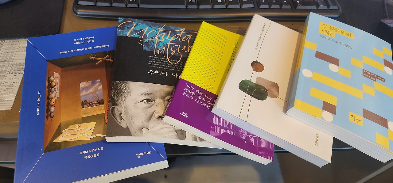 우치다 선생을 소개한 개론서, 우시다의 신서, 우치다가 공저한 책, 그리고 우치다의 레비나스 3부작 중에서 나머지 2권.