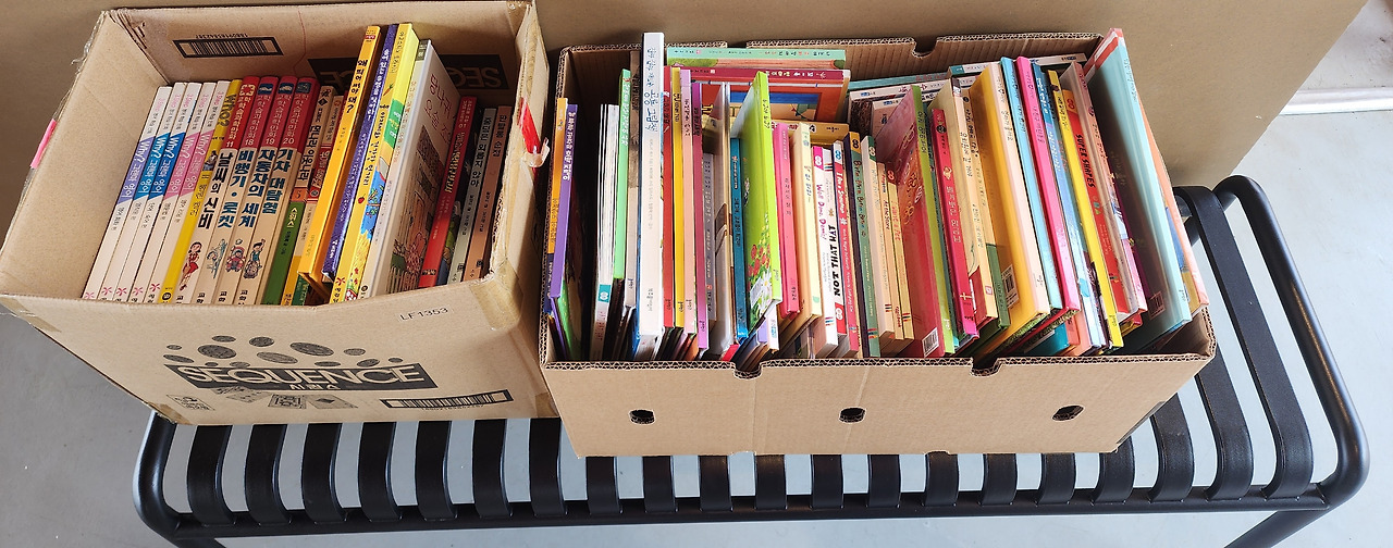 그건 그거고. 매표소에 근무하다 보니 배를 기다리는 시간에 그림책이나 간단히 읽을거리를 찾는 사람들이 있다. 초등학생용 그림책과 교양도서를 20여 권 갖춰놓고는 있지만 턱 없이 부족한 양이다. 그래서 송악도서관에 갈 때마다 가파도에 책을 좀 기증해 달라고 부탁했는데, 드디어 책을 받았다. 팔십 여 권에 가까운 책을 배에 싣고 옮겨놓았다. 거기에 내가 가지고 있는 책을 합하면 백 몇십 여권은 되리라. 시작으로 나쁘지 않다.