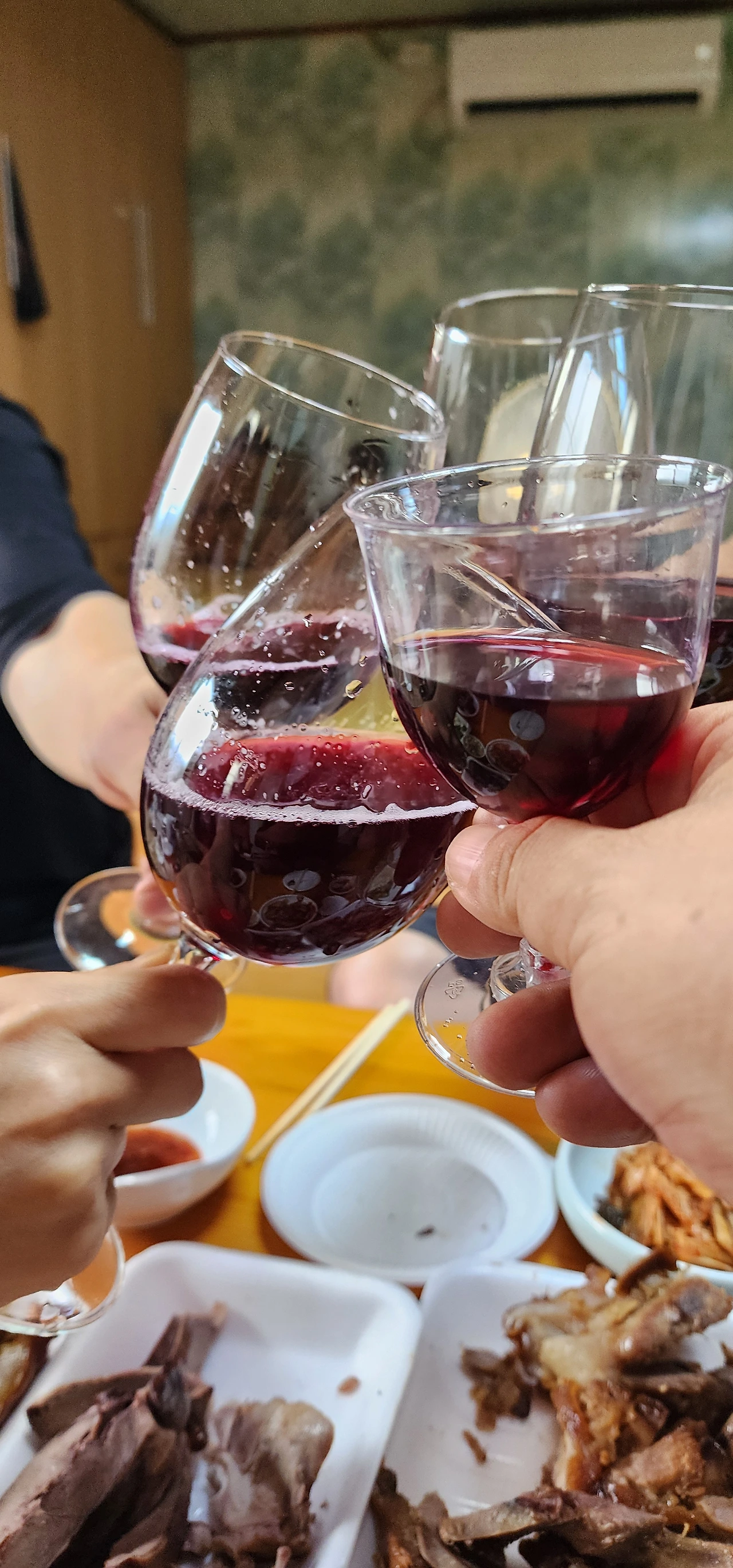 사무장 영진이 아빠는 공무가 많아 늦게 출석했고, 오랜만에 가파도로 낚시하러 온 후배 일엽이와 그의 친구가 합석했다. 사람이 많이 모여 술이 모자라다는 이야기를 듣고 나는 소주 한 병과 포도주 한 병, 안주 한 봉지를 싸들고 합석했다.