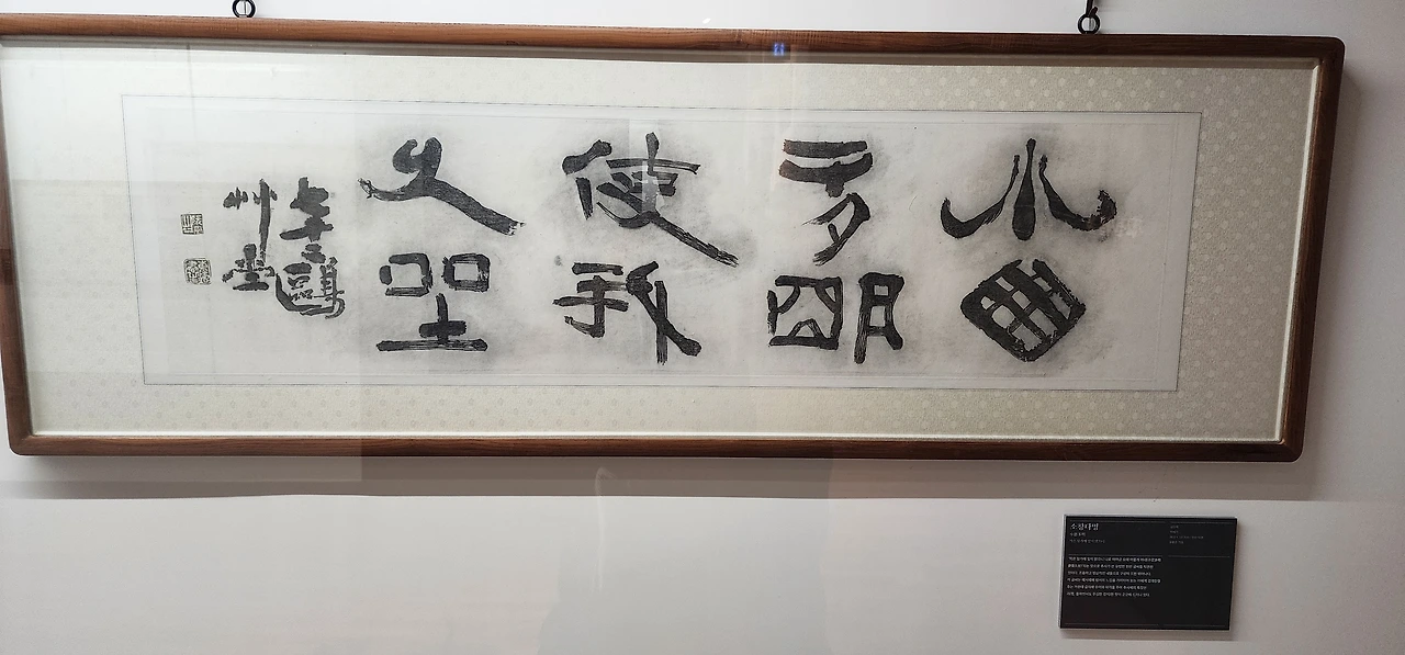 전시관으로 들어가니 시원한 기운이 온몸으로 퍼져왔다. 지하이기도했지만, 적절히 조절된 내부 온도가 몸의 열기를 식혔던 것. 전시관 바깥에서는 공사를 하고 있는 인부들이 땀을 흘리고 있었다. 벽 하나를 사이에 두고 이렇게 삶이 달라진다. 예전에는 후딱 지나치면 봤는데, 이번에는 천천히 작품들을 음미하며 글을 쓸 때 추사의 심정을 상상해 본다. 1840년(55세, 헌종 6년)에 동지부사로 임명되었다가 갑자기 제주도 대정현으로 위리안치 유배를 당했을 때, 어떤 심경이었을까? 그로부터 2년 후 아내가 죽었을 때, 아내의 사망 소식도 듣지 못한 채 갇혀 있었다. 그가 유배에서 풀려난 것은 1848년(63세, 현종 14)이었으니 햇수로 9년 동안 유배생활을 한 것이다. 그동안 추사는 붓이 마르고 닳도록 쓰고 또 썼다. 우리가 알고 있는 추사체는 바로 이곳에서 탄생한 것이다.