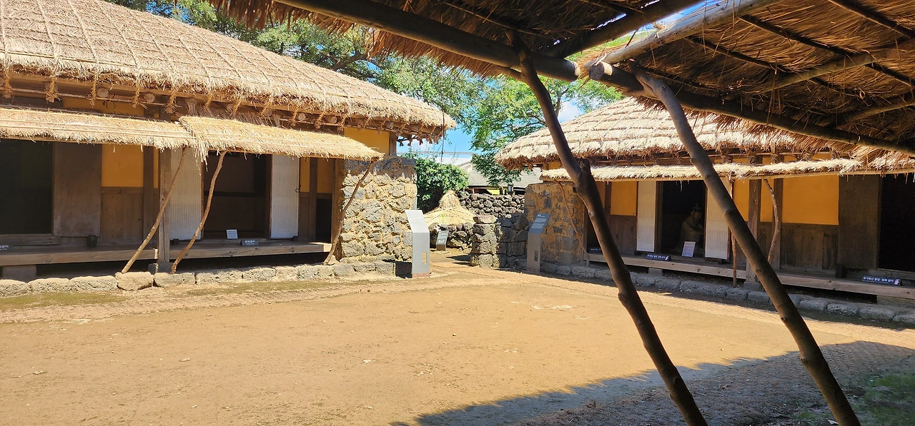 잠시 머문 후, 추사기념관으로 향한다. 추사의 유배지를 보존하고 기록물을 전시하는 곳. 예전에 전시관은 들렀으나 유배지는 지나쳤는데, 오늘은 목적은 유배지를 보는 것. 더위로 지친 나를 위무하기 위해 추사가 갇혀 지낸 곳으로 향하는 나의 마음은 무엇일까? 작은 고난을 더 큰 고난과 비교해서 나를 반성하려는 것일까. 추사에게 유배는 날벼락이었지만, 나의 가파도행은 자발적 선택이라 언감생심 비교할 바도 안 되지만, 그래도 유배지에서 보내는 추사의 자세와 기운이 내 안에 스며들기를 바라며, 유배지 마루턱에 기대앉아 오랫동안 있었다. 그늘 사이로 선선한 바람이 밀려왔다. 그나마 유배지는 제주도의 부잣집 모걸이(중간채)를 얻었고, 밖거리(바깥채)는 인근 학동을 가르치는 서당 역할을 했으니, 외롭지는 않았겠다. (물론 안거리는 집주인 강도순의 식구가 기거하는 곳이다.) 그래 봐야 방들은 달팽이집처럼 작았다.