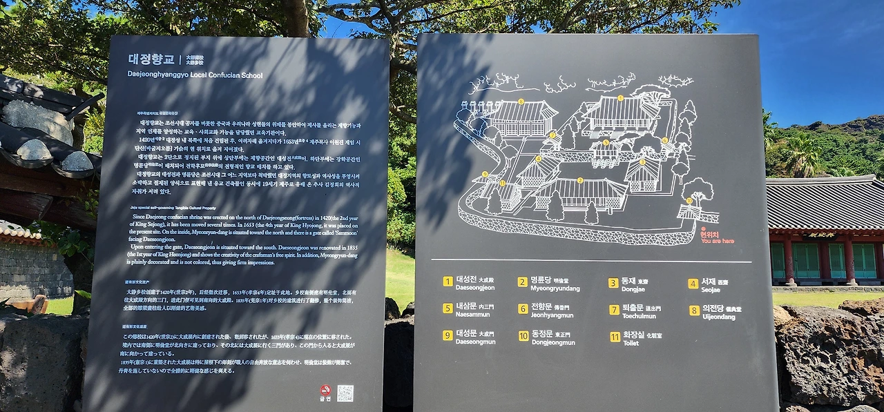 어제, 금요일 쉬는 날이다. 휴식뿐 아니라 재충전이 필요하다. 지인에게 소개받은 강풍식당에서 해장국을 먹고 추사를 보러 간다. 가는 길에 대정향교가 눈을 들어와 잠시 들른다. 추사가 유배 왔을 때 이곳에서 제주의 학생들을 가르친 적이 있다는 기록이 있다. 또 추사의 명작 세한도에 나오는 소나무가 이곳의 나무를 모델로 했다는 이야기도 전해진다. 진짜일까?