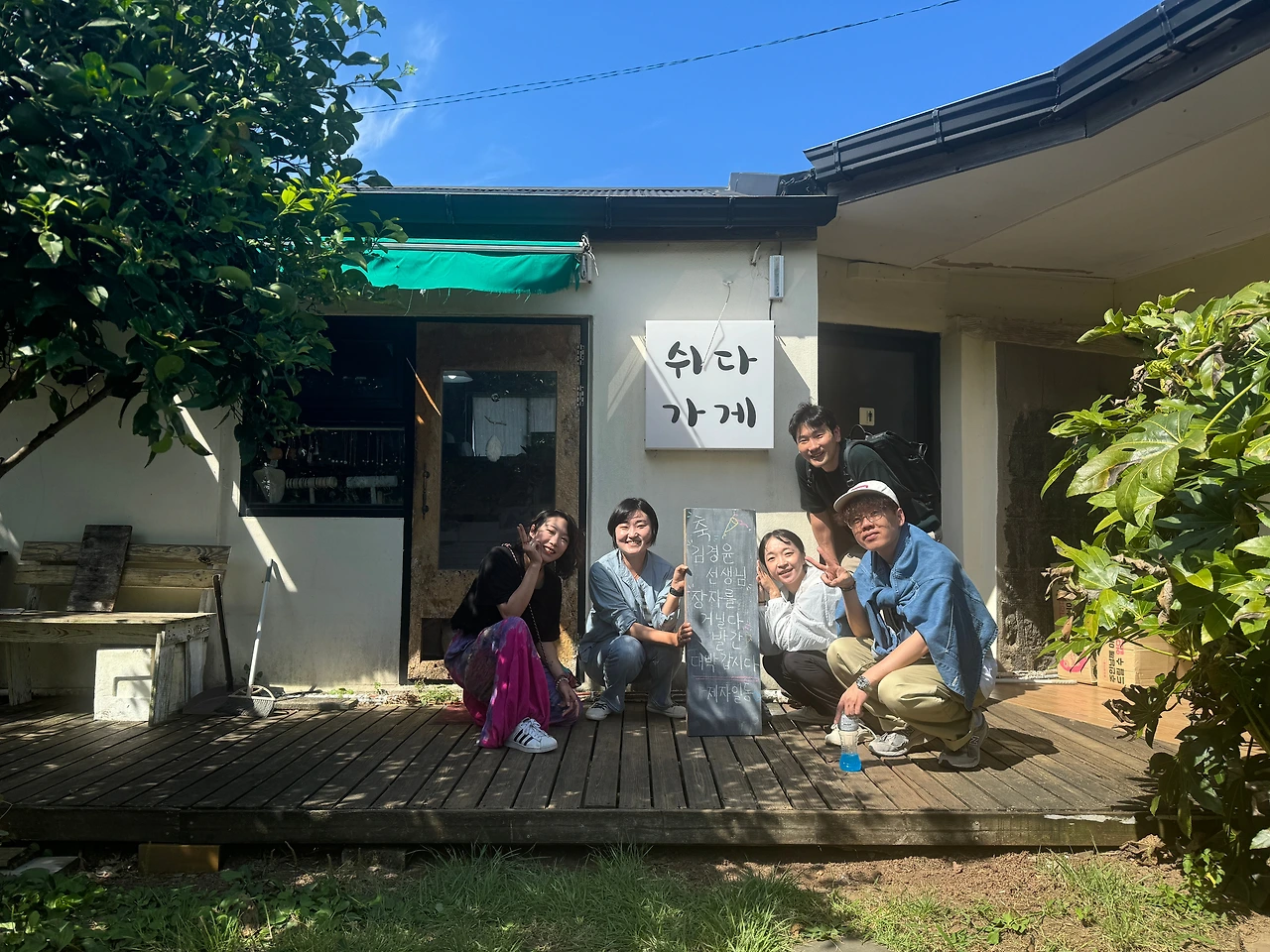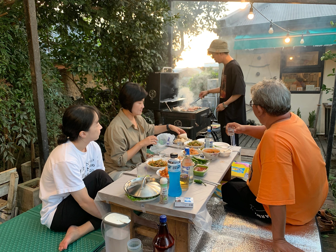 28일 저녁에는 사계리에 있는 쉬다가게에서 묵었다. 드디어 동진이와 준우가 합쳐지면서 오기로 한 모든 청년(?)들이 모였다. 나는 그냥 가파도로 놀려오는 건 줄 알았는데, 제자들은 내가 출간한 책 <장자를 거닐다>의 출간을 기념하는 파티를 열어주기로 했다 한다. 밤에 고기를 굽고, 케이크를 자르고, 술을 마시며 조촐하게 출간 축하파티를 했다. 방 4개짜리 단독주택에 마당이 있는 집에서 밤늦도록 먹고 마시며 그동안 못다 한 이야기들로 흥성했다.