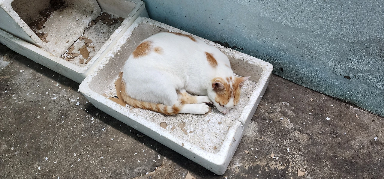 다시 졸음이 쏟아져서 자리에 누웠다. 이내 잠이 든다. 새벽에 몸이 으슬으슬해서 깬다. 창문을 열어놓고 잤더니 찬 공기가 방 안으로 들어왔나 보다. 밖으로 나가 세수를 하고, 고양이 밥을 챙겨준다. 은근히 참치캔을 바라던 고양이들이 건식사료만 주는 나를 보더니 망설이다가 건식사료에 주둥이를 박는다. 감자는 먹는 둥 마는 둥 하더니 꾸벅꾸벅 잠에 든다. 나는 어제 먹다 남은 참치김치찌개에 어묵을 썰어놓고 재탕을 해서 아침밥을 일찍 먹었다.