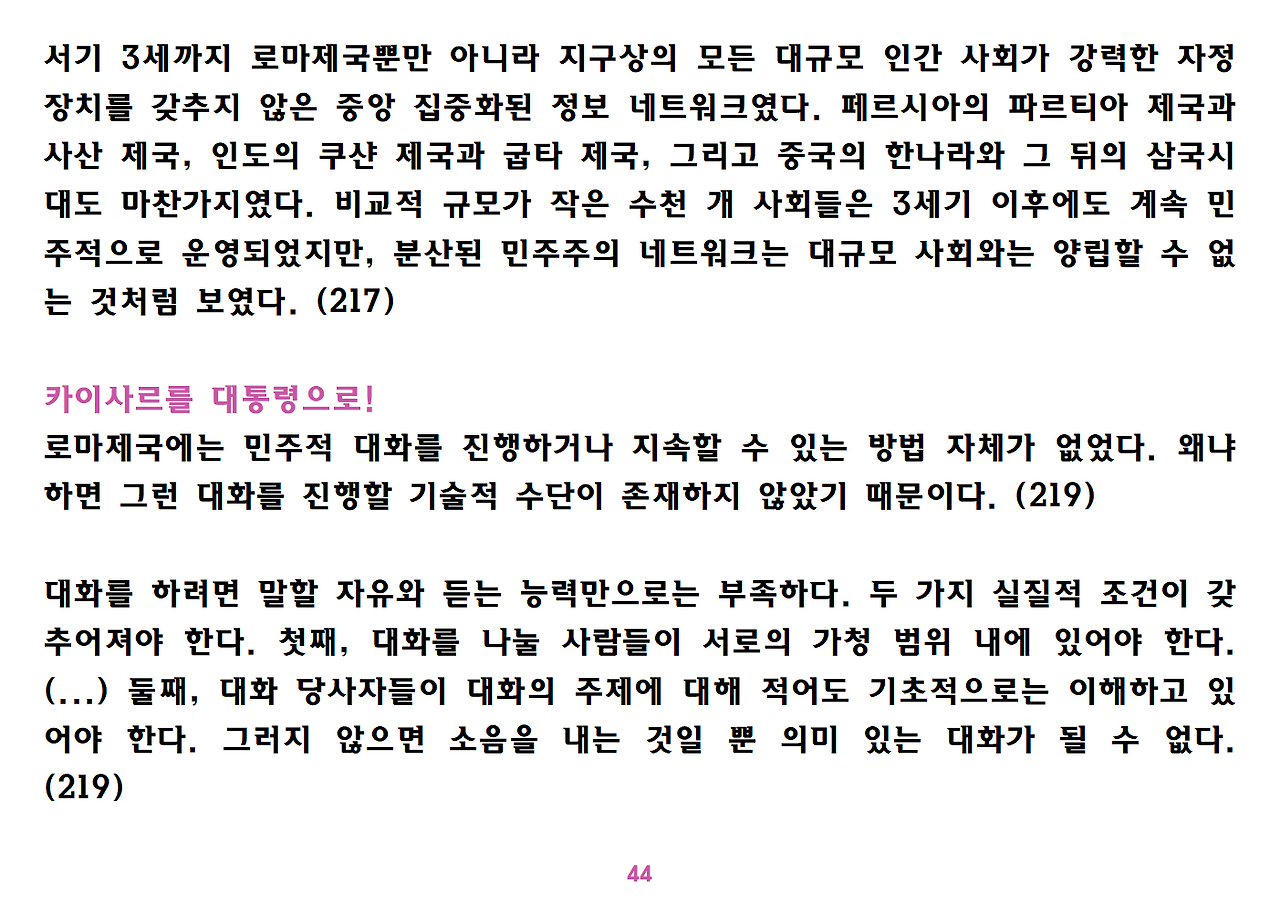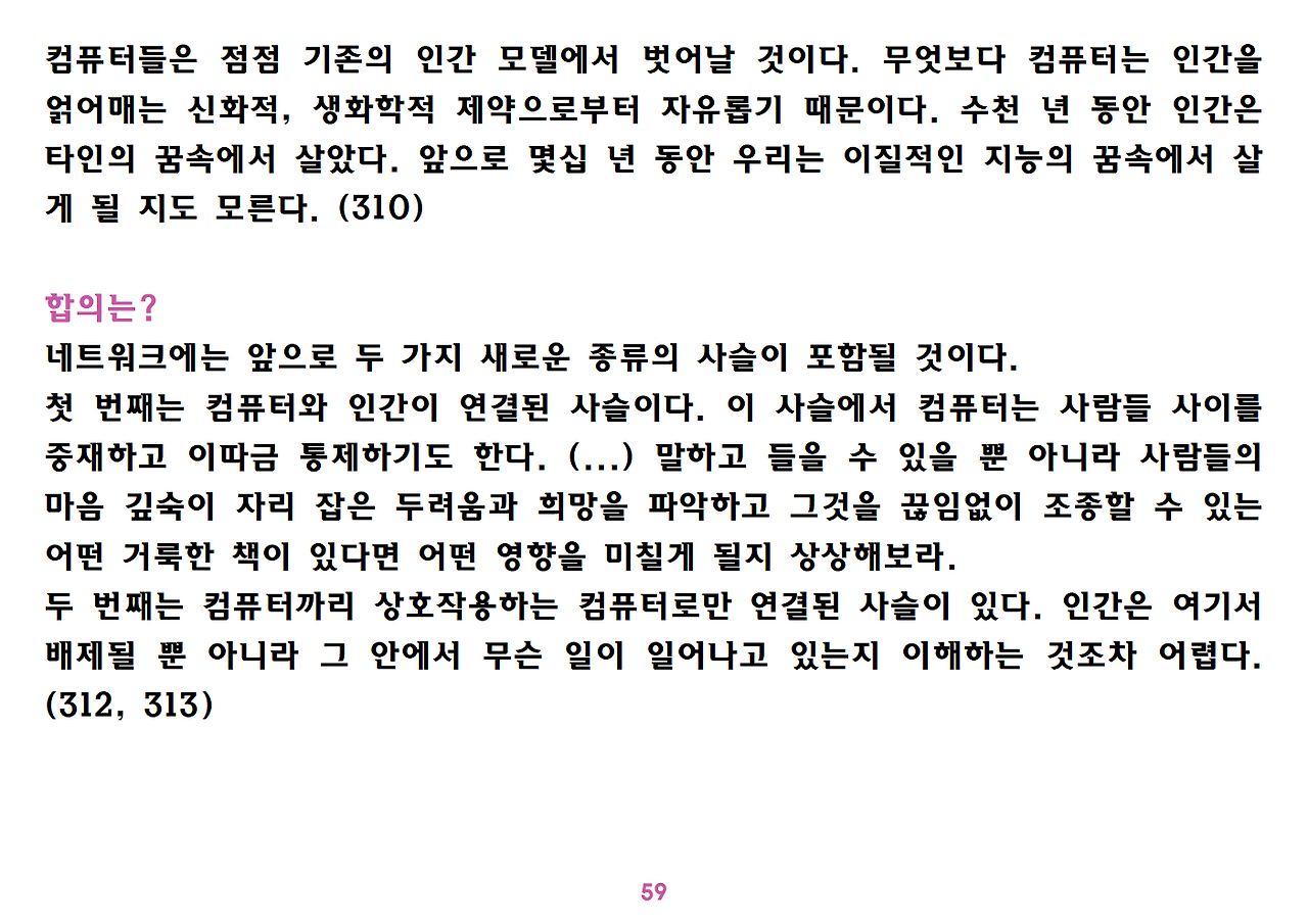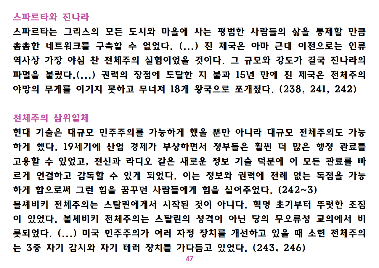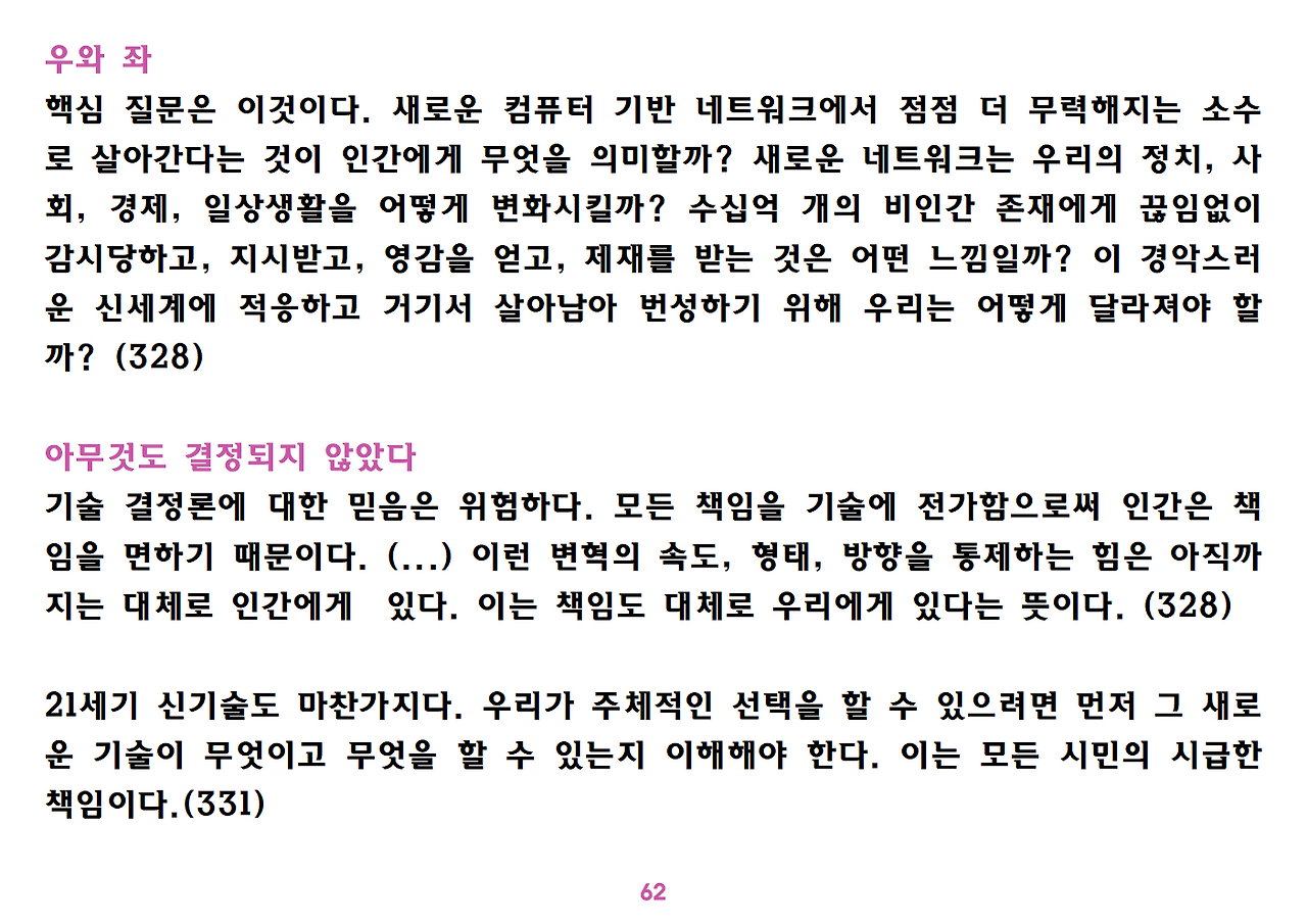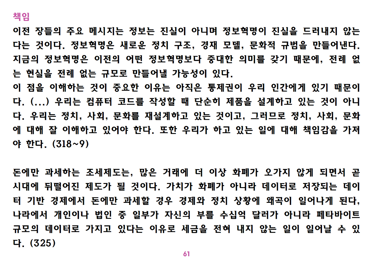 (독자가 지적해서 확인해보니) 유발 하라리의 인류학 3부작은 <사피엔스>, <호모 데우스>, <21세기를 위한 21가지 제언>이다. <사피엔스>에서는 인간(사피엔스)가 어떻게 지구의 최종 승자가 됐는지를 이야기했고, <호모 데우스>에서는 인간의 네트워크의 중심이 어떻게 신에서 인간으로, 인간에서 인터넷 데이터로 넘어갔는지. <21세기~>에서는 21세기를 살아가는 현대인이 어떤 문제에 봉착했으며 이를 어떻게 성찰해야 하는지 살폈다. <사피엔스> 이후 6년만에 <넥서스>가 나왔다. <넥서스>에서는 인간의 역사를 정보와 네트워크의 역사로 다시 조명하면서, 인간을 매개로 하지 않는 AI가 등장한 후 인간의 삶은 어떻게 바뀔지, 지구의 최종지배질서가 민주주의 혹은 전체주의가 될지, 아니면 AI가 될지를 살핀다. 그중에서 앞의 세 권의 책은 이미 발췌 정리하여 올렸고, 이제 마지막으로 <넥서스>를 올린다. (상업적 사용은 하지 마시길) 즐공!