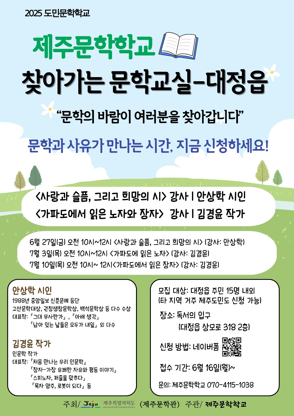 세 번의 강좌 중 첫 강좌는 가파도에 와서 글을 쓰고 있는 안상학 시인형이 열어주고, 나머지 두 강좌를 제가 맡았습니다. 제주도에서도 워낙 지방(?)이라 모객이 쉽지 않다고 주최 측에서 걱정합니다. 그 걱정은 주최 측에서 맡기고, 나는 몇 명이 참석하든 최고의 강의를 보여주기 위해 프로그램을 다듬습니다. 한 명이 오더라도 백 명처럼 귀하게 여기고, 백 명이 오더라도 한 명에게 강의하듯 집중하는 수밖에 없습니다.