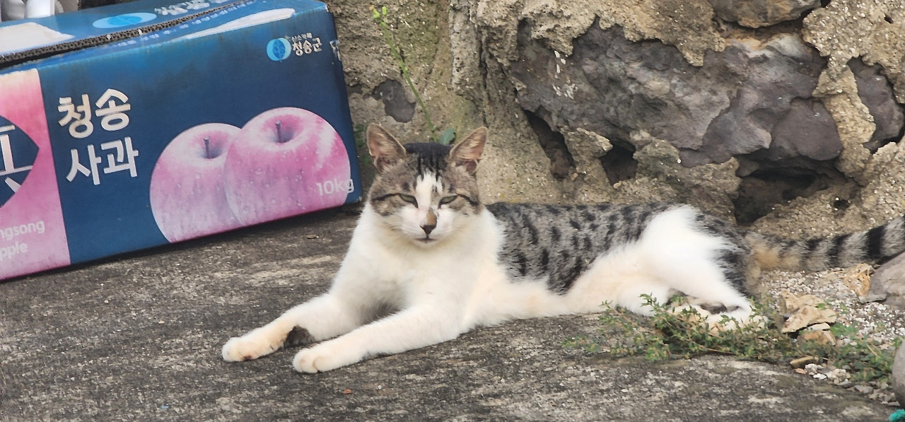 우리 집을 새로 방문하는 고양이 두 마리가 눈에 띄어, 한 마리를 대문에 걸고, 다른 한 마리는 아래에 첨부합니다. 우리 집 마당이 자기 집인양 느긋하게 나를 관철하는 모습이 의젓합니다.