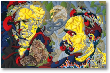 니체의 『차라투스트라는 이렇게 말했다』에는 수없이 많은 동물들이 등장합니다. 이미 위에서 우리는 낙타와 사자를 봤네요. 차라투스트라의 곁에는 독수리가 있습니다. 그런데 이 독수리의 목에는 뱀이 감겨있지요. 차라투스트라를 상징하는 두 종류의 동물, 독수리와 뱀. 뱀은 영원한 시간을 상징합니다. 유한한 공간 속에서 펼쳐지는 무한한 시간이 뱀입니다. 영원회귀라고도 할 수 있겠네요. 한편 독수리는 최고도로 비상할 수 있는 존재입니다. 중력을 뚫고 자유롭게 날 수 있는 독수리는 차라투스트라의 분신과 같은 동물이지요.