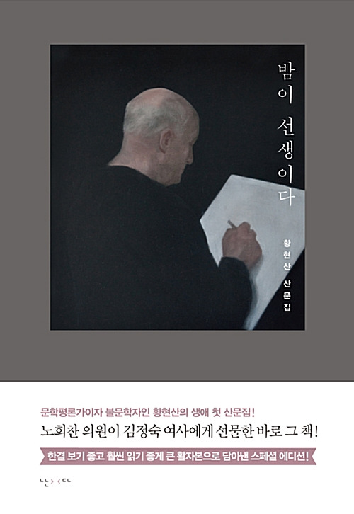 문학평론가이자 번역가로 활동하셨던 황현산 선생이 2018년 세상을 뜨셨다. 1945년에 태어나셨으니 74세까지 사신 셈이다. 별세하시기 5년 전인 1913년에 첫 에세이집 《밤이 선생이다》가 출간되었다. 진작에 사야지 생각하다가 돌아가시고 나서야 사게 되었다. 사놓고도 귀히 여겨 천천히 읽어야지 미루다가 이제야 읽었다. 제목의 영향인지 밤에 읽어야 제격일 것 같아, 밤을 패어 읽었다.