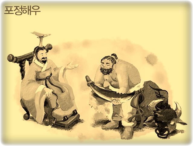 포정이 문혜왕을 위해 소를 잡았습니다. 손으로 뿔을 잡고, 어깨로 소를 받치고, 발로 밟고 무릎으로 누르고는 칼질을 하는데, 그 동작이 춤과 같고, 소 잡는 소리가 음률이 있는 듯했습니다. 이 모습을 지켜보고 있던 문혜왕이 감탄하며 말했습니다.