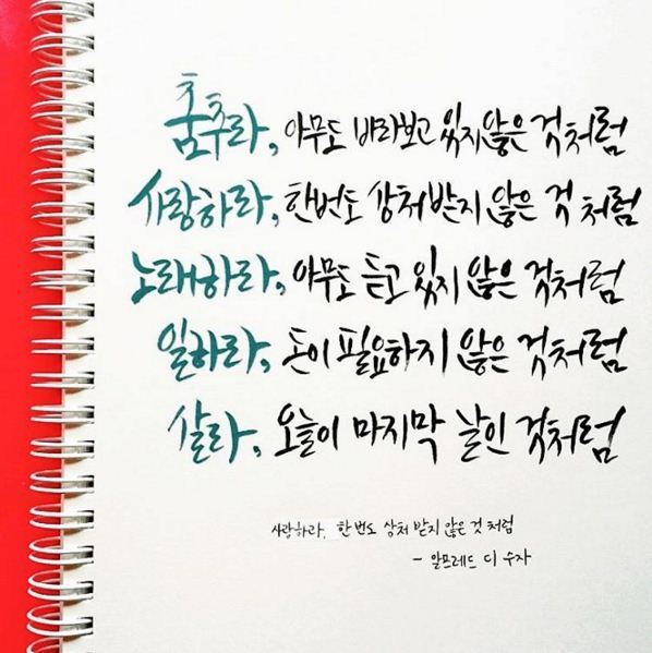 관련지어 떠오르는 시 하나를 소개한다. 알프레드 디 수자가 썼다고 알려진 <사랑하라, 한번도 상처받지 않은 것처럼>이다.