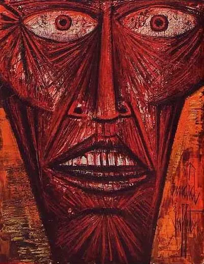 베르나르 뷔페가 그린 얼굴. 에코르셰 기법이 명료하게 드러난다.