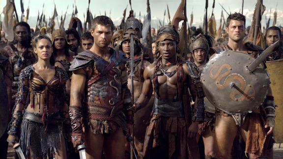 드라마 <스파르타쿠스>의 한 장면. 검투사의 반란을 다룬 이 드라마는 역대 최고 인기물 중에 하나였다. 로마의 몰락은 제국의 횡포에 맞선 검투사들의 의해 가속화되었다.