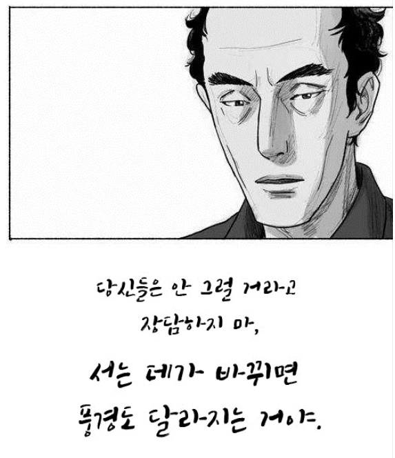 2015년 JTBC에서 상영한 <송곳>은 부당해고에 맞서는 노동자들의 싸움을 그려낸 인상깊은 드라마였습니다. 특히 노동법률을 상담해주는 구고신(안내상 分)은 드라마 곳곳에서 명대사를 날린 사람이었지요. 지금도 생생하게 기억하고 있는 그의 대사 하나. “당신들은 안 그럴 거라고 장담하지마. 서는 데가 바뀌면 풍경도 달라지는 거야.” 남을 함부로 판단하지 말라는 말입니다. 처지에 따라서 생각도 바뀔 수 있음을 경고하는 말이지요.