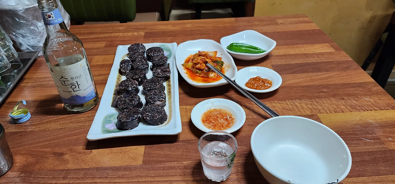 야놀자로 검색하여 급히 숙소를 정하고 작고 예쁜 향토 식당에 들어가 제주도 토종음식으로 배도 채우고, 알코올도 채웠다. 숙소로 돌아와 씻고 누우니 여독이 밀려온다. 자자.