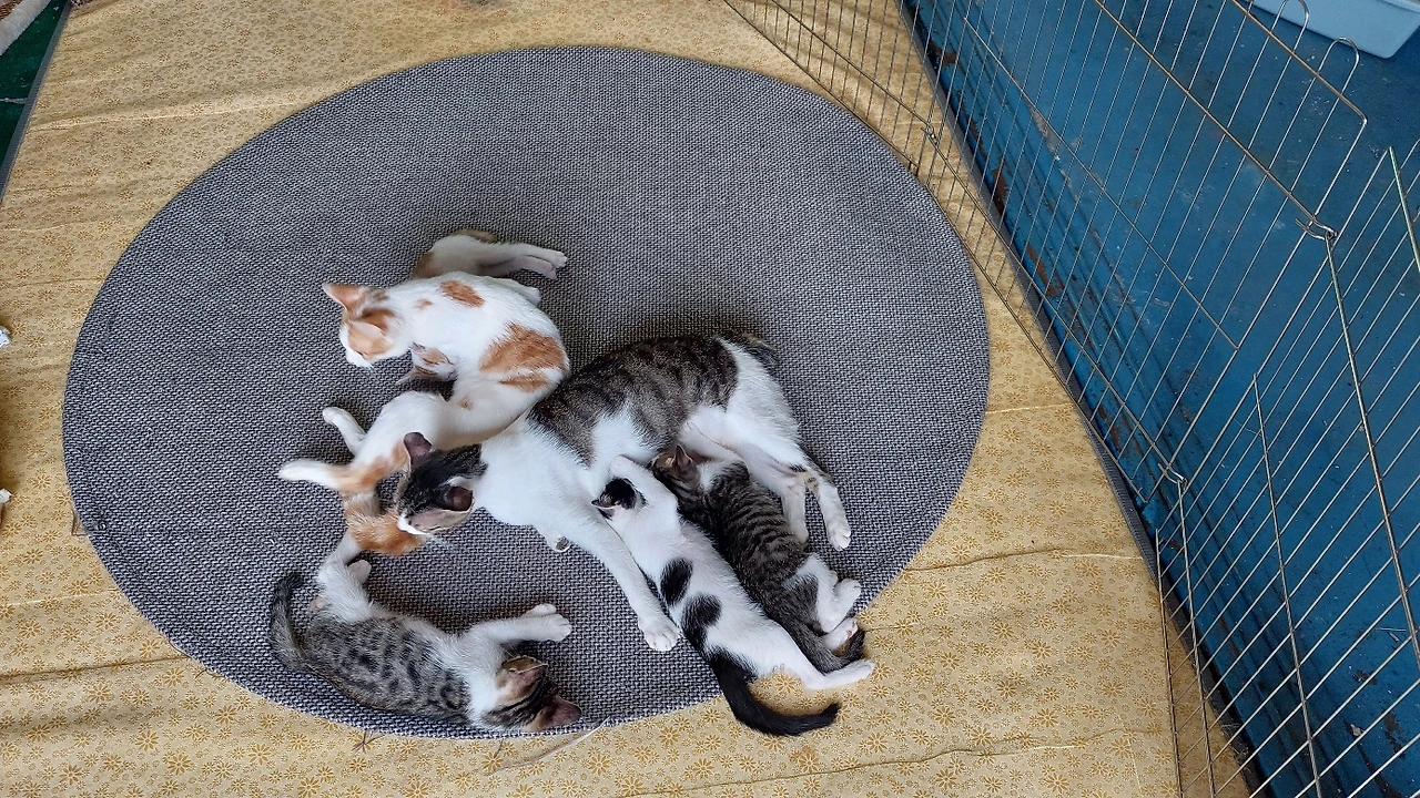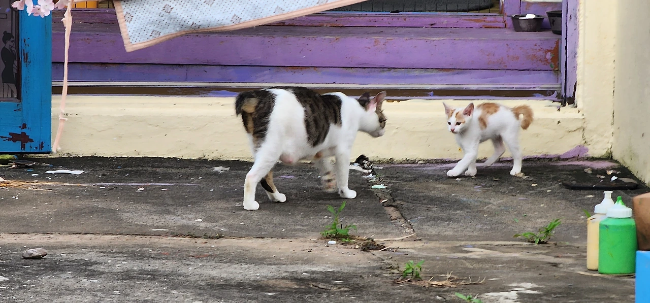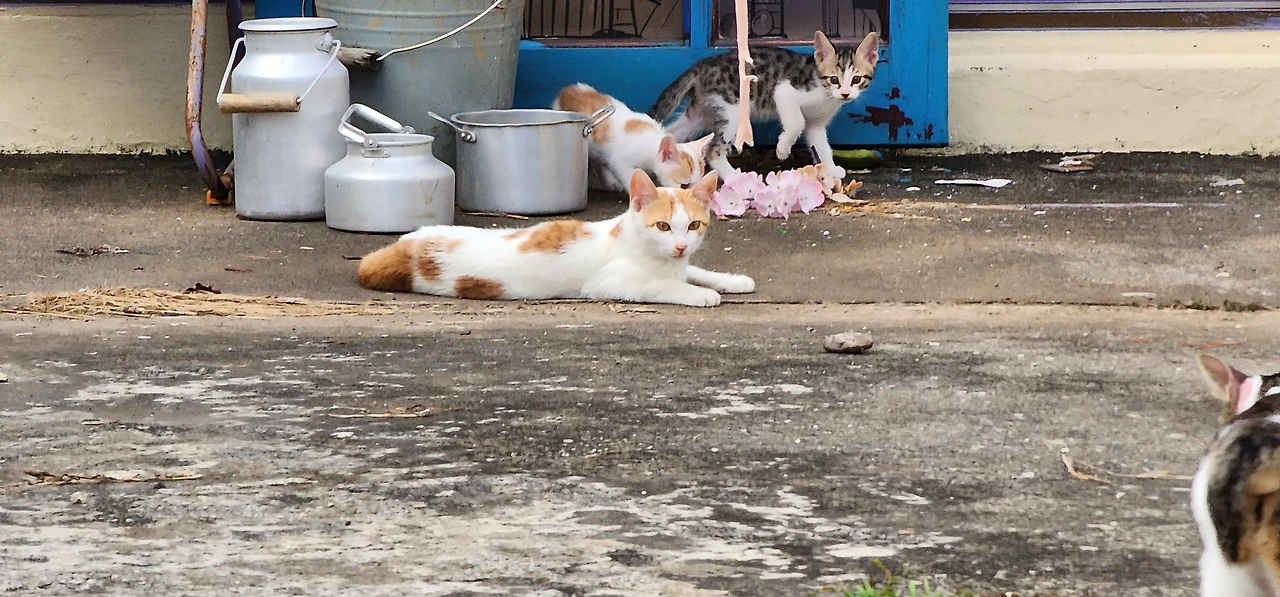 심지어 새끼 고양이의 단체 사진까지부모 고양이는 공동으로 육아를 한다. 새끼 고양이들은 엄마(검은 고양이) 품에서도 잘 자고 아빠(노란 고양이) 품에서도 잘 잔다. 밤이 되면 외부 경계는 아빠 고양이가 주로 하지만, 낮이 되면 엄마 고양이가 하기도 한다. 그때 아빠 고양이는 문밖으로 나가 주변을 산책하기도 한다. 가파도에는 길고양이가 집고양이만큼이나 많아 보인다. 간혹 사람이 살지 않는 폐가가 눈에 띄는데 아마도 주인이 사라지자 길고양이가 된 듯하다.(하지만 이 모든 것은 나의 짐작일 뿐, 생태학자나 주민에게 확인한 사실이 아니다. 더욱이 고양이들에게는 말이 통하지 않아 물어볼 수도 없었다. 이 사실이 조금 서럽긴 하다. 아주 가까이 살면서도 언어장벽에 막혀 속시원히 소통하지 못하는 이 근원적 거리감!)
