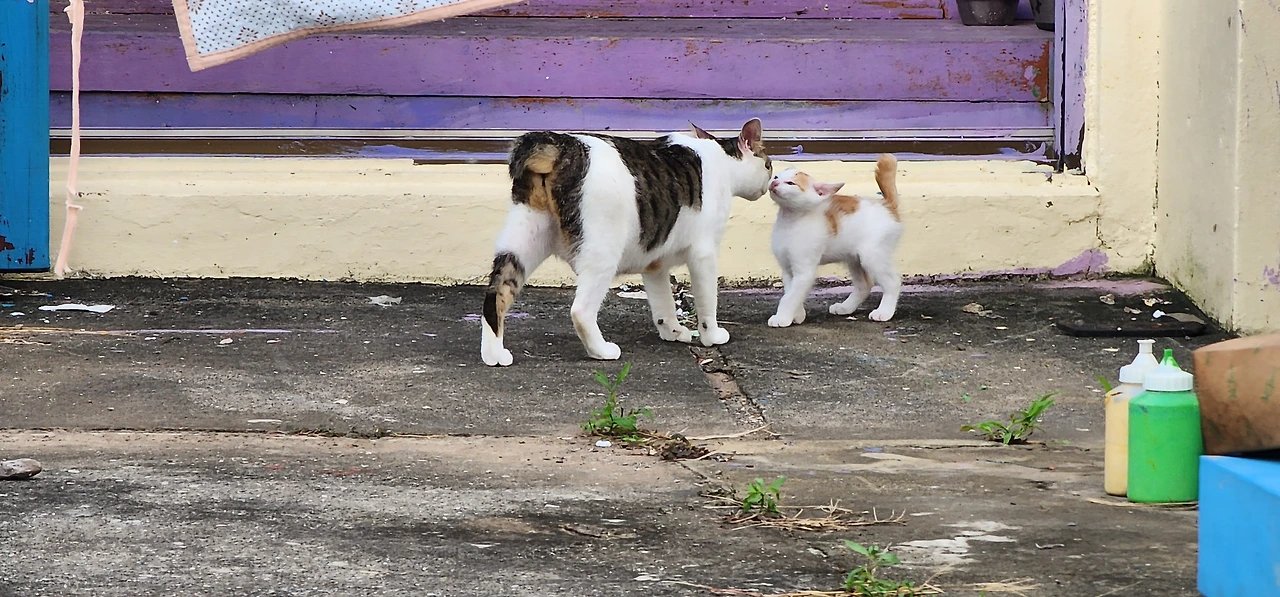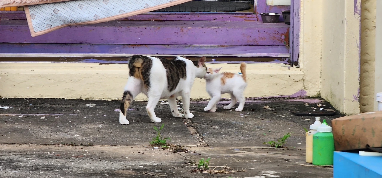 나는 집고양이들의 친밀감 표시가 적응의 결과라고 생각한다. 야생동물들은 이렇게 훅 다가오지 않는다.(내가 먹잇감이 아니라면.) 길에서 만나는 고양이 중 사람에게 쉽게 접근하는 고양이는 십중팔구 집고양이 경력을 가진 것이리라. 예전에 한겨레신문 문화부기자였던 고종석씨가 가르랑 말과 으르렁 말을 구별하여 소개한 적이 있었다. 일명 고양이 언어와 개 언어라 생각할지 모르지만 모든 동물은 친해지면 가르랑 대고, 낯설면 으르렁 댄다. 집고양이들이 가르랑거리는 것은 뭔가 필요한 게 있을 때다.