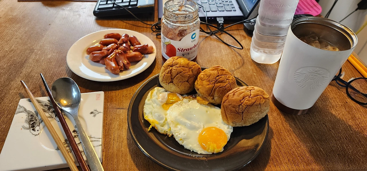아침은 빵과 쨈. 계란.그리고 십자칼집을 넣은 소시지와 냉커피. 점심은 만두찌개, 저녁은 두부깅치찌개를 먹었다.내가 새로 생각하는 루틴은 고양이들을 위해 하루 한 가지씩 좋은 일을 해보는 것이다. 오늘은 고양이 공간에서 가장 더러운 것을 찾아 빨아 널었다. 매일 하나씩 세척하면 고양이도 훨씬 쾌적하게 살 수 있을 것이다. (게다가 지금 고양이들과 거실을 공유할 것인지 진지하게 생각하고 있다. 전쟁 대신 평화가 올까?)