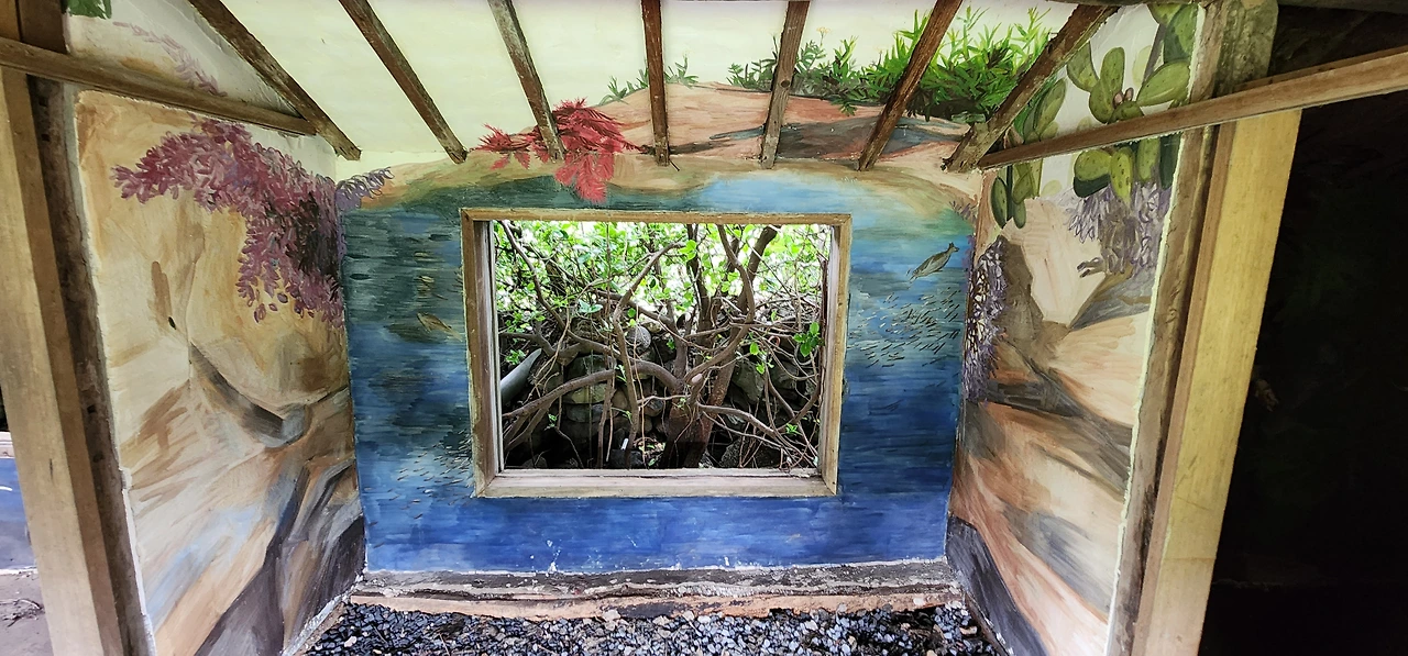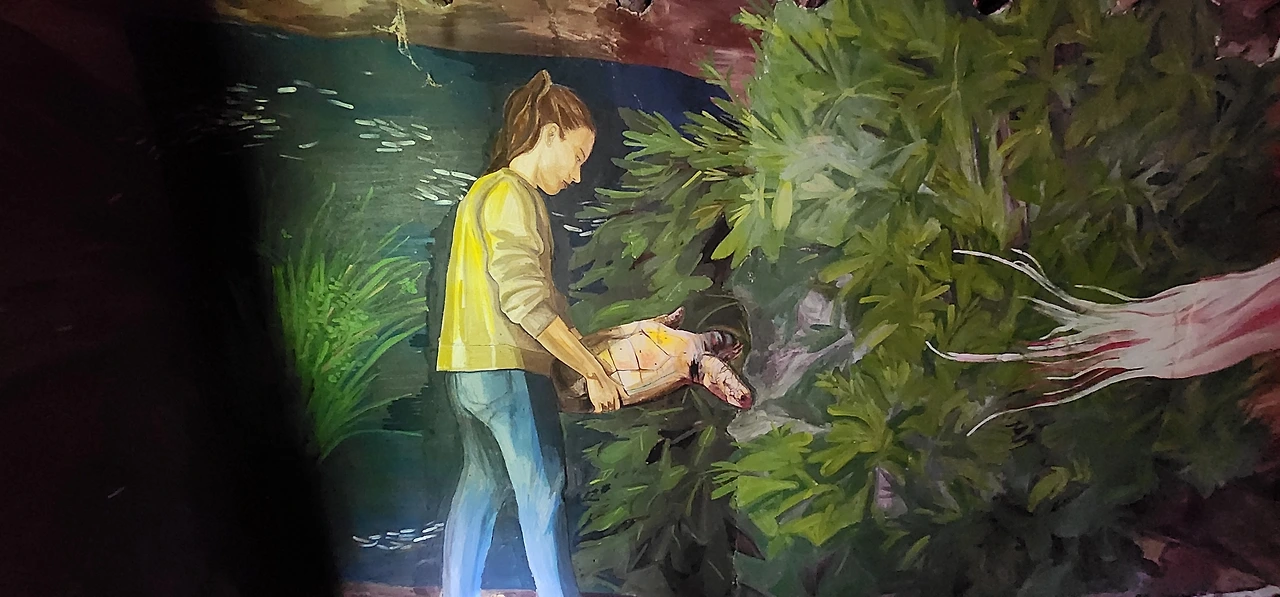 모든 생명체들이 서로 포옹하고 어우러지는 작고도 아름다운 세계가 아직도 선명하게 보이지 않은가? 작업한 지 1년 남짓 밖에 지나지 않아 작품도 거의 훼손되지 않은 이런 명소가 그냥 행사가 끝나자 푯말 하나 없이 폐허처럼 방치되고 있었다.