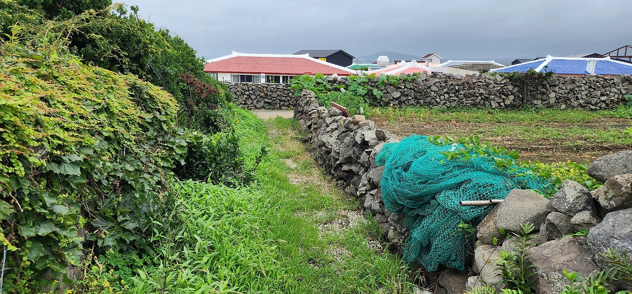 나는 그림에 흠뻑 빠져 감탄하며 집밖으로 나왔다. 그러자 밖이 이전과는 다르게 보였다. 마당 밖으로는 넓은 청보리밭이 펼쳐 있고, 집 주위로는 아담한 돌담과 작은 텃밭터가 눈에 들어왔다. 다른 집들은 거리에 문이 있어 집안이 훤히 보이는데 이 집은 골목을 끼고 들어가야 입구가 나오니 사생활도 확실히 보장될 수 있겠구나 생각했다. (잘만 생각하면 이곳은 최고의 명당터일 수도 있다.)
