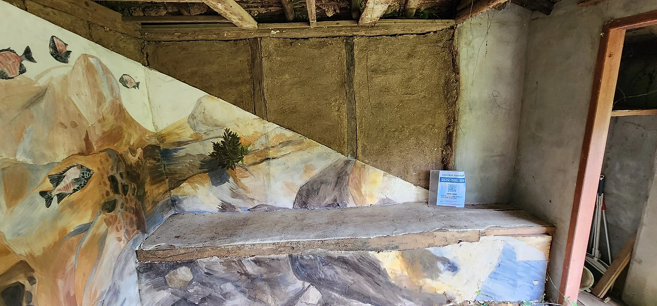 그 집의 벽마다 제주도(가파도)를 주제로 한 프레스코가 멋지게 장식하고 있었다. 그림을 감상해 보자.