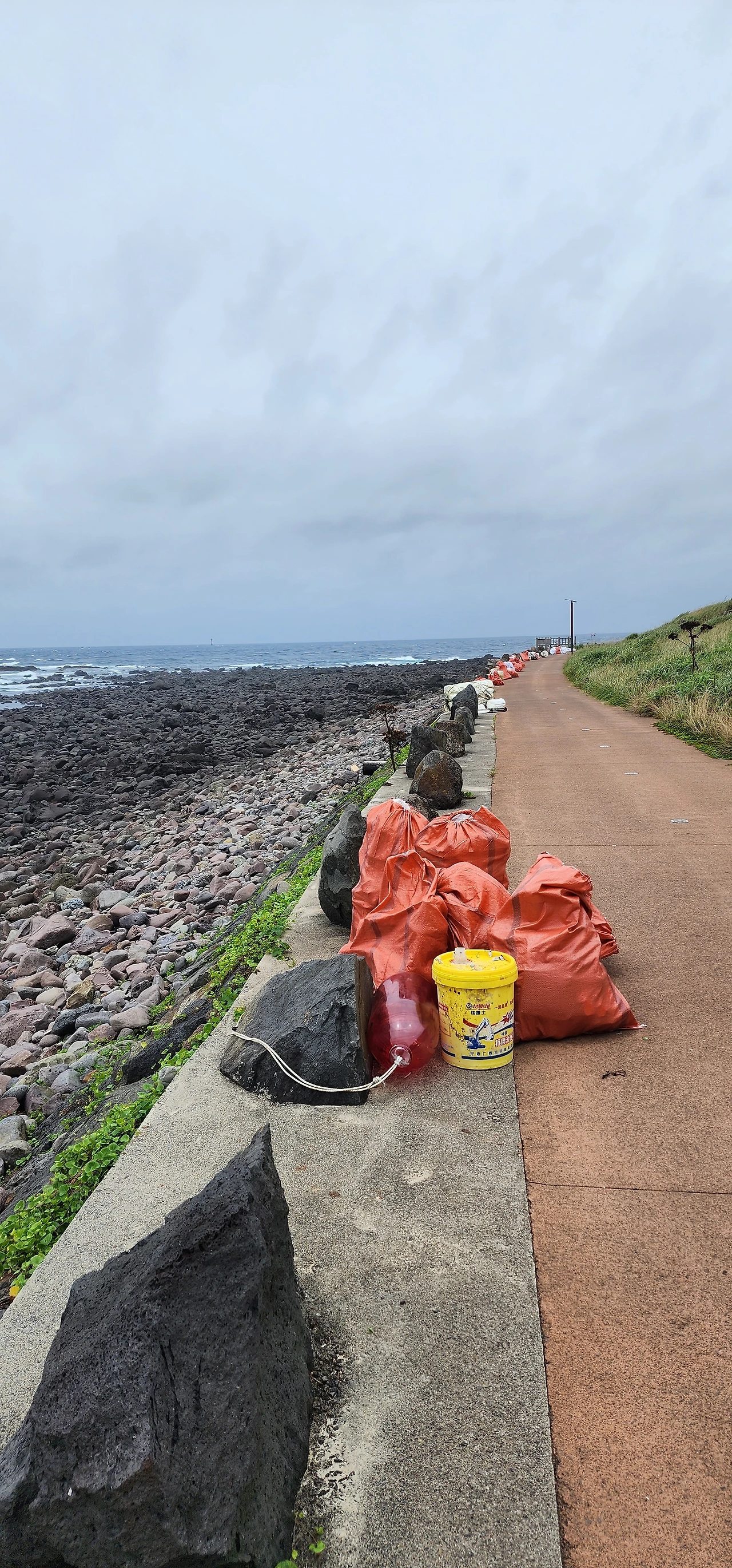자전거를 타고 상념에 잠기는데 갑자기 한 구간에 도달하자 해안가가 깨끗하다. 놀라서 주변을 살피니 누군가가 쓰레기를 주워 마대에 담아 놓았다. 아무도 없는 이른 아침에 일어나 해안가 쓰레기를 줍는 보이지 않는 손길이 있었던 것이다. (나라도 주워볼까 망설이던 마음이 부끄러웠다.)