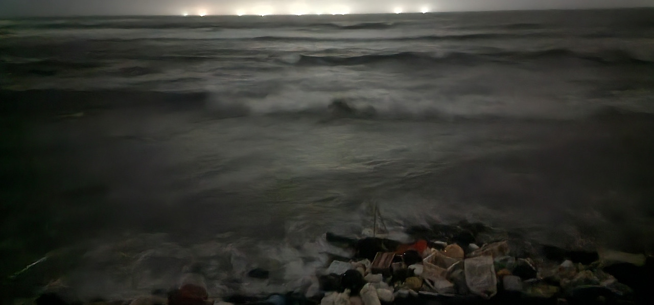 파도에 밀려온 문명의 쓰레기들이 보이는가?뭐, 이런 우울한 상념에 잠기며 잠시 바다를 바라보는데, 주변에 모기들이 먹잇감을 만났다는 듯 나를 물어뜯는 것만 같다. 온몸이 비에 젖고 팔과 다리가 근질근질하다. 아이고, 빨리 돌아가자. 파도를 뒤로 한채 급히 집으로 향한다. 모기의 무게도 감당하지 못하는 한심한 인간이 인간 문명을 걱정하고 있다니.