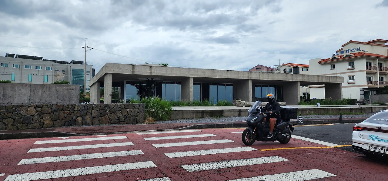 이제 그만. 빵빵한 배를 두드리며 식당을 나서는데 마지막으로 딱 한 군데 더 들릴 데가 있단다. 걸어서 3분. 제주도에서 제일 맛있고, 멋지고, 진성성 있어 놀랄 만한 찻집이란다. 더 먹을 수 있을까? 해안가 도로를 따라 조금 올라가니 가파도 매표소 같이 생긴 건물이 보인다. 저기란다. (멀리서 보니까 별론데?) 이름이 <카페, 진정성>이다.